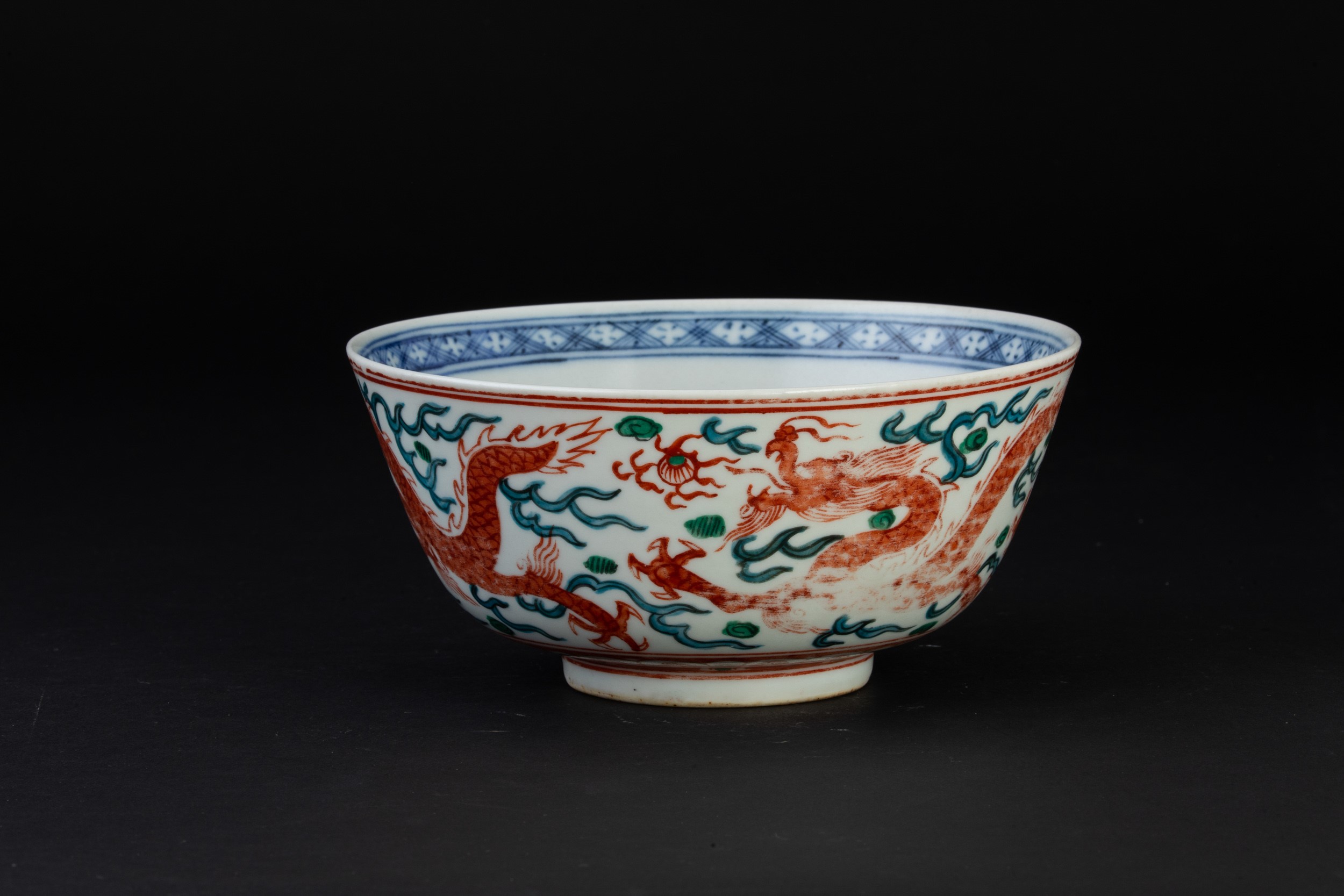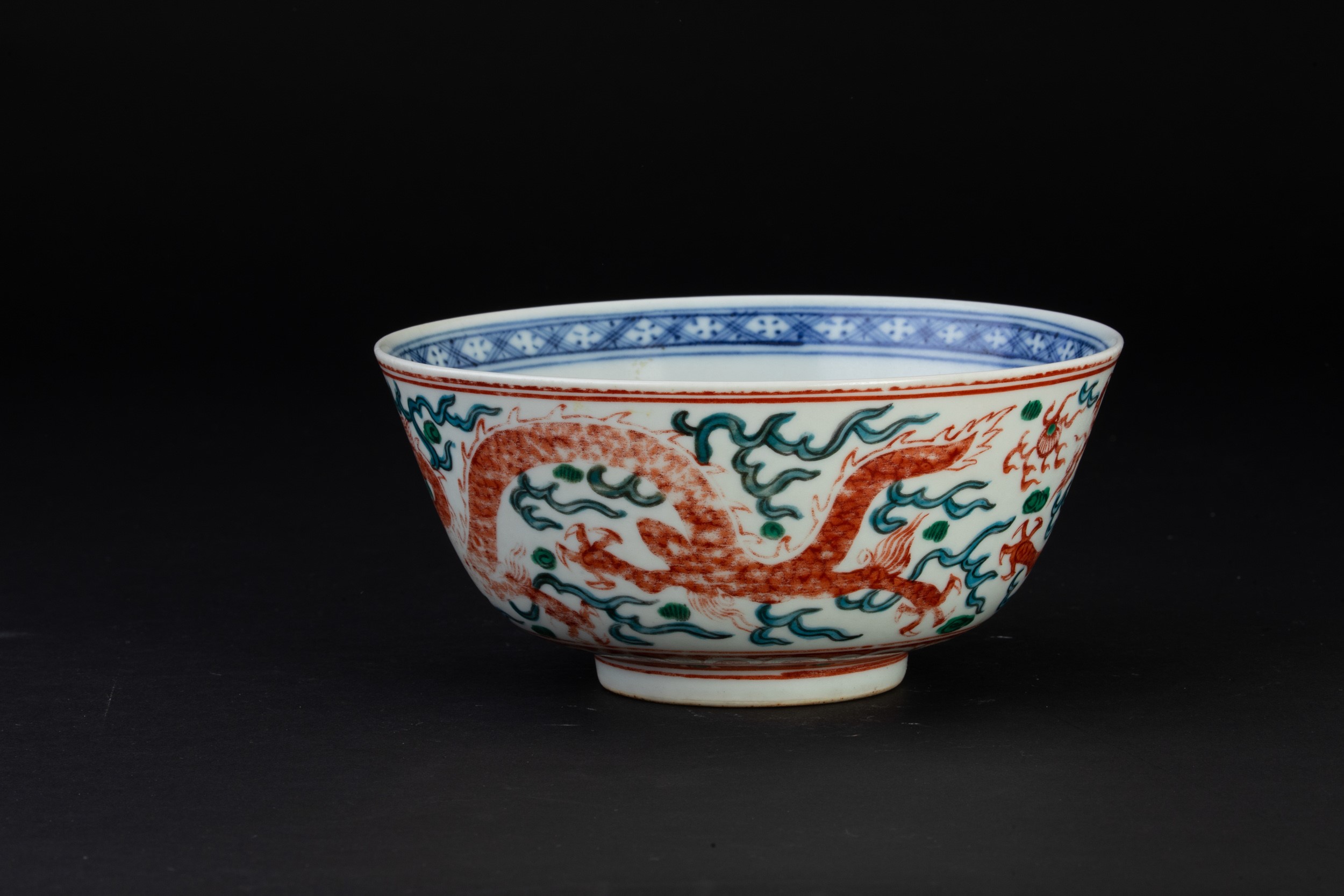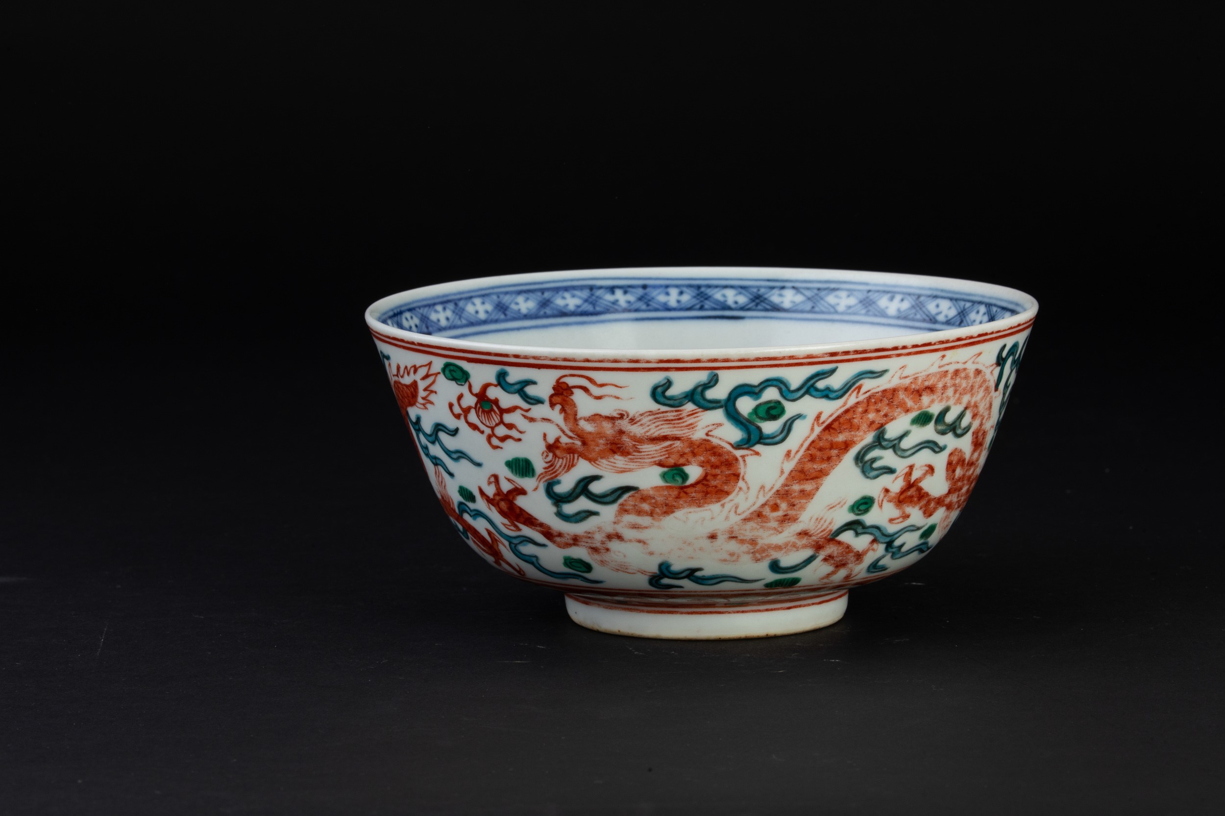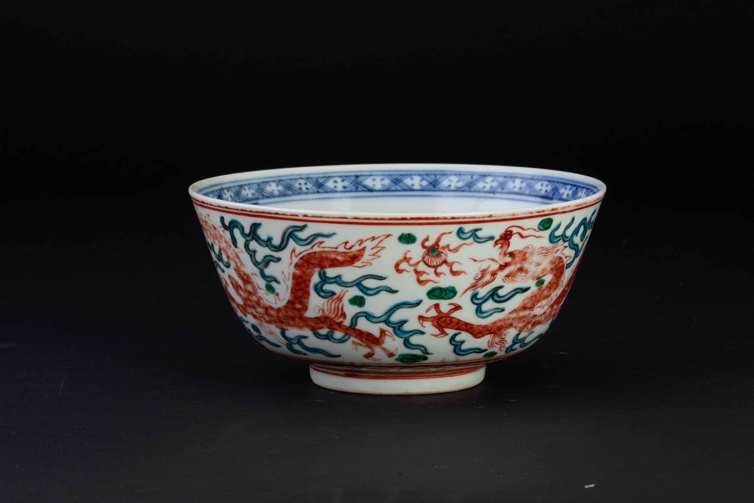 Ciotola in porcellana con figure di draghi tra le nuvole, Cina, Dinastia Qing, XIX [..]