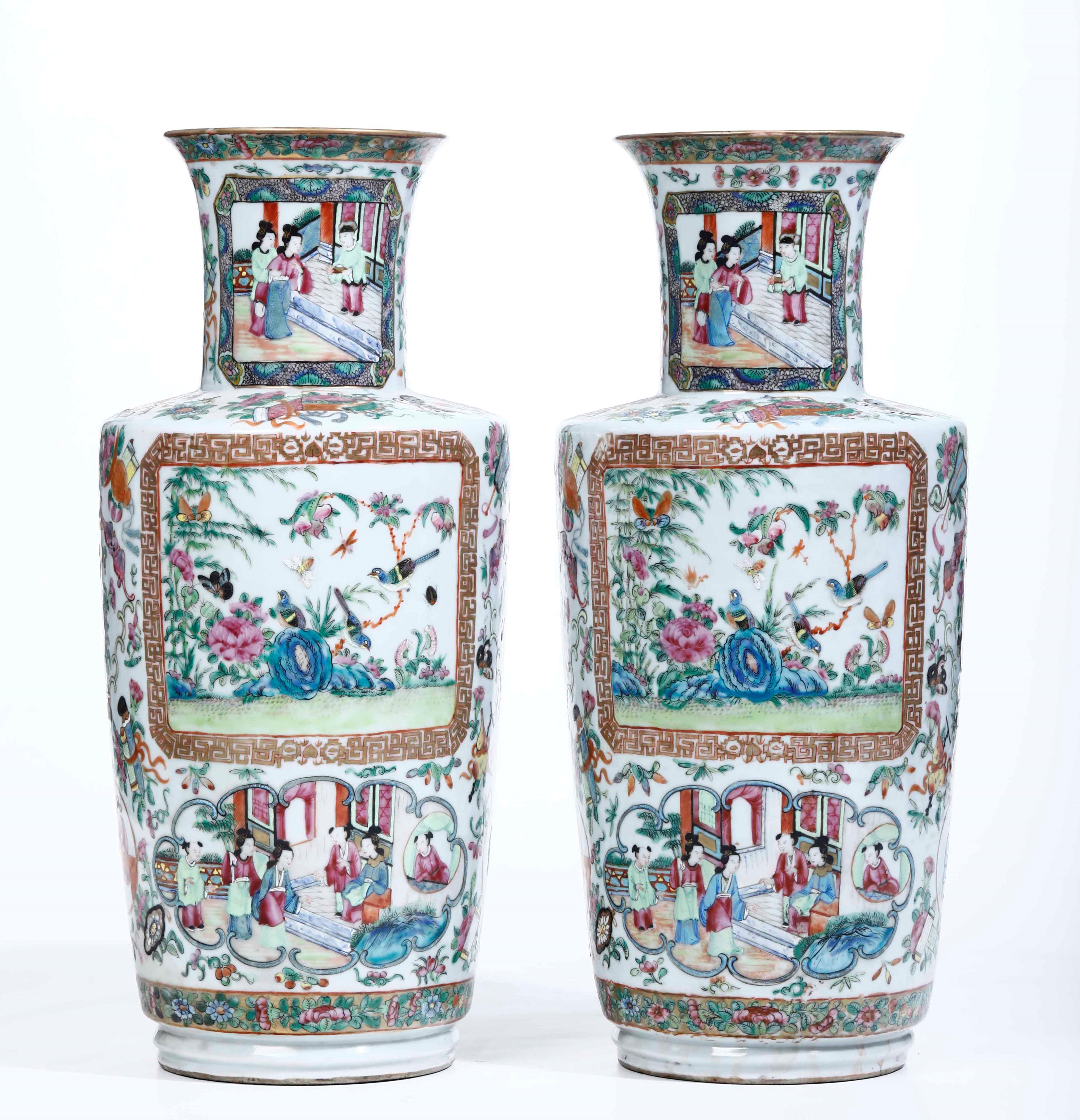 Coppia di vasi in porcellanana Canton nei colori della Famiglia Rosa con decori [..]