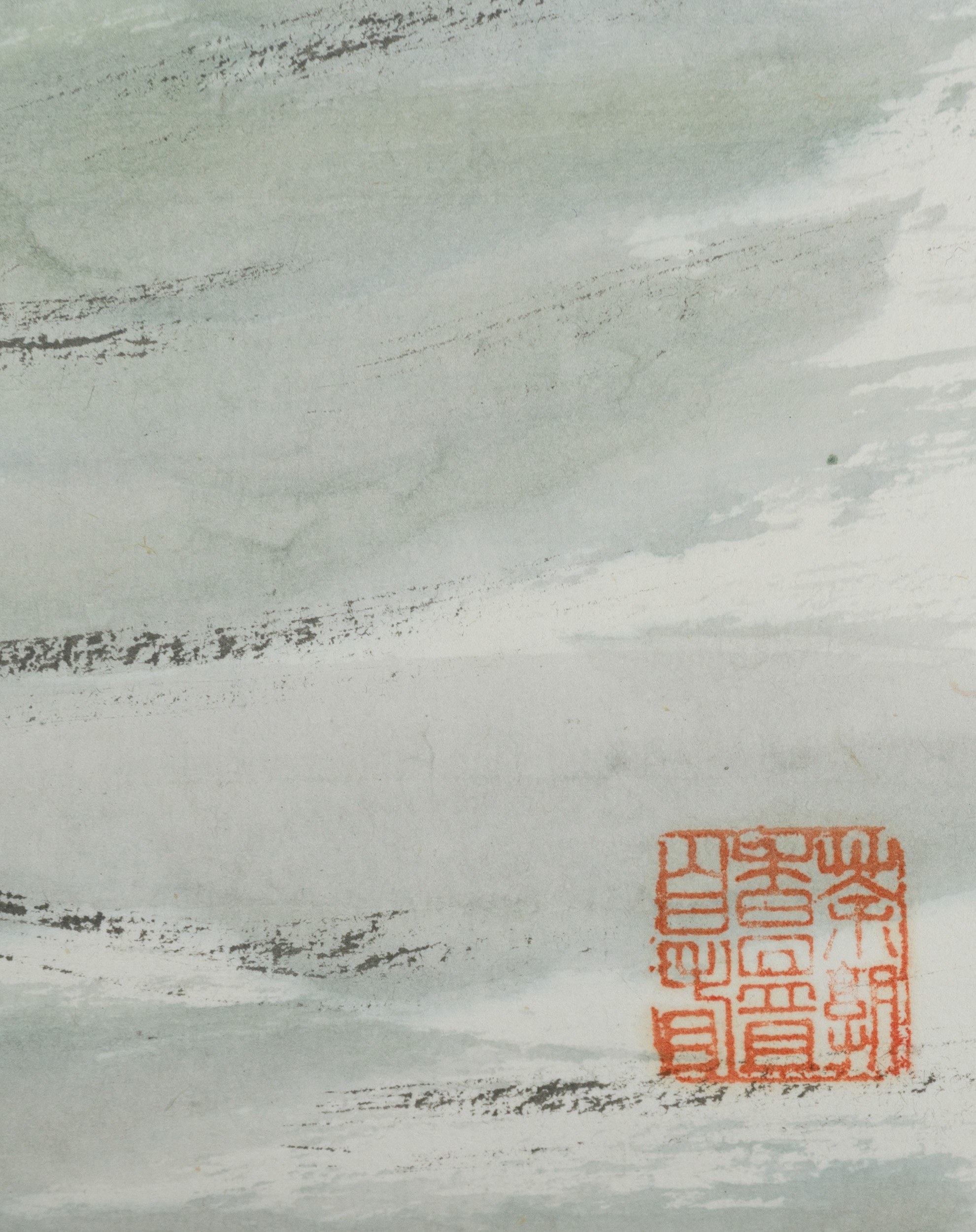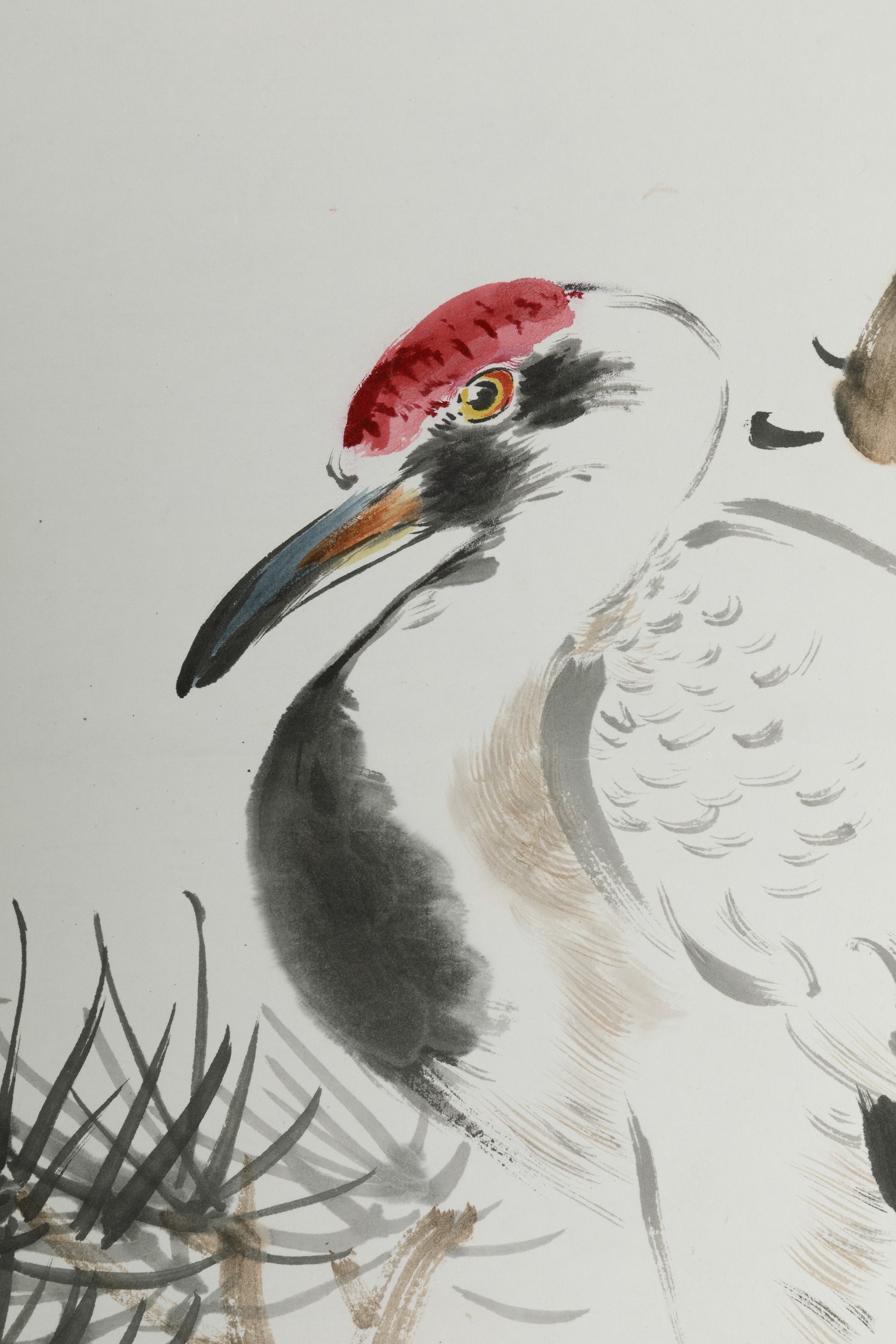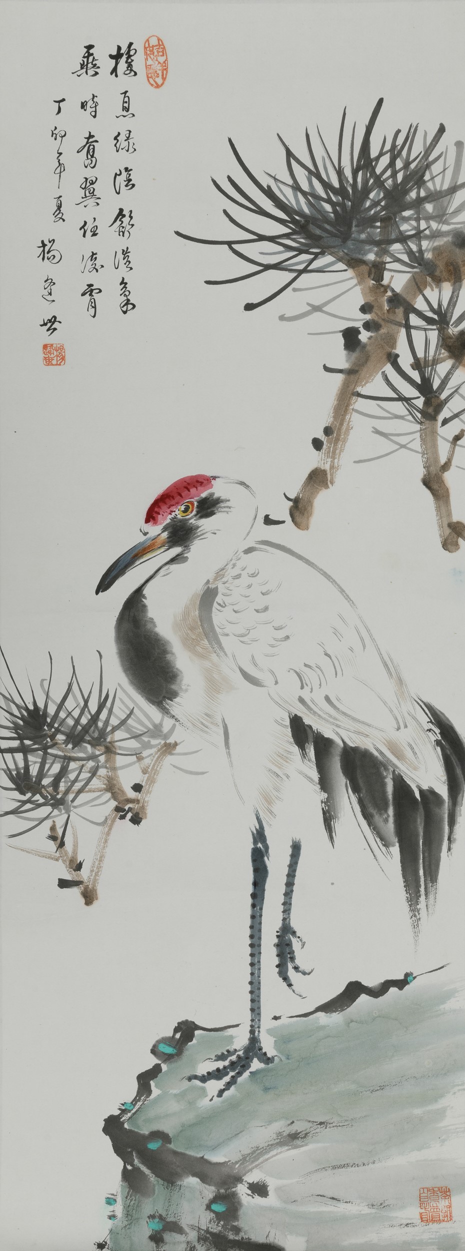 Dipinto su carta raffigurante airone e iscrizione, Cina, XX secolo