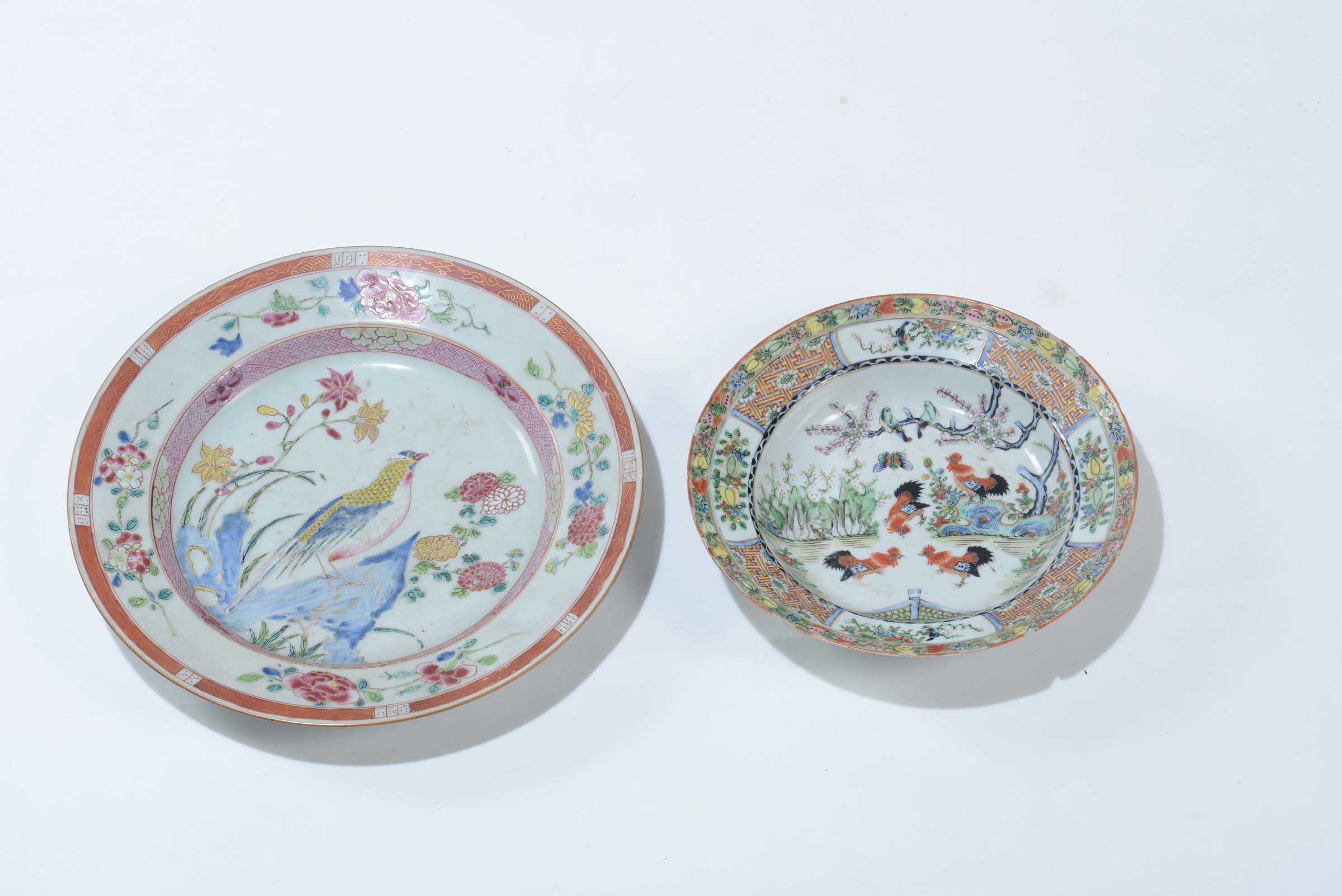 Due piatti in porcellana a smalti policromi, Cina, Dinastia Qing, XVIII secolo e [..]