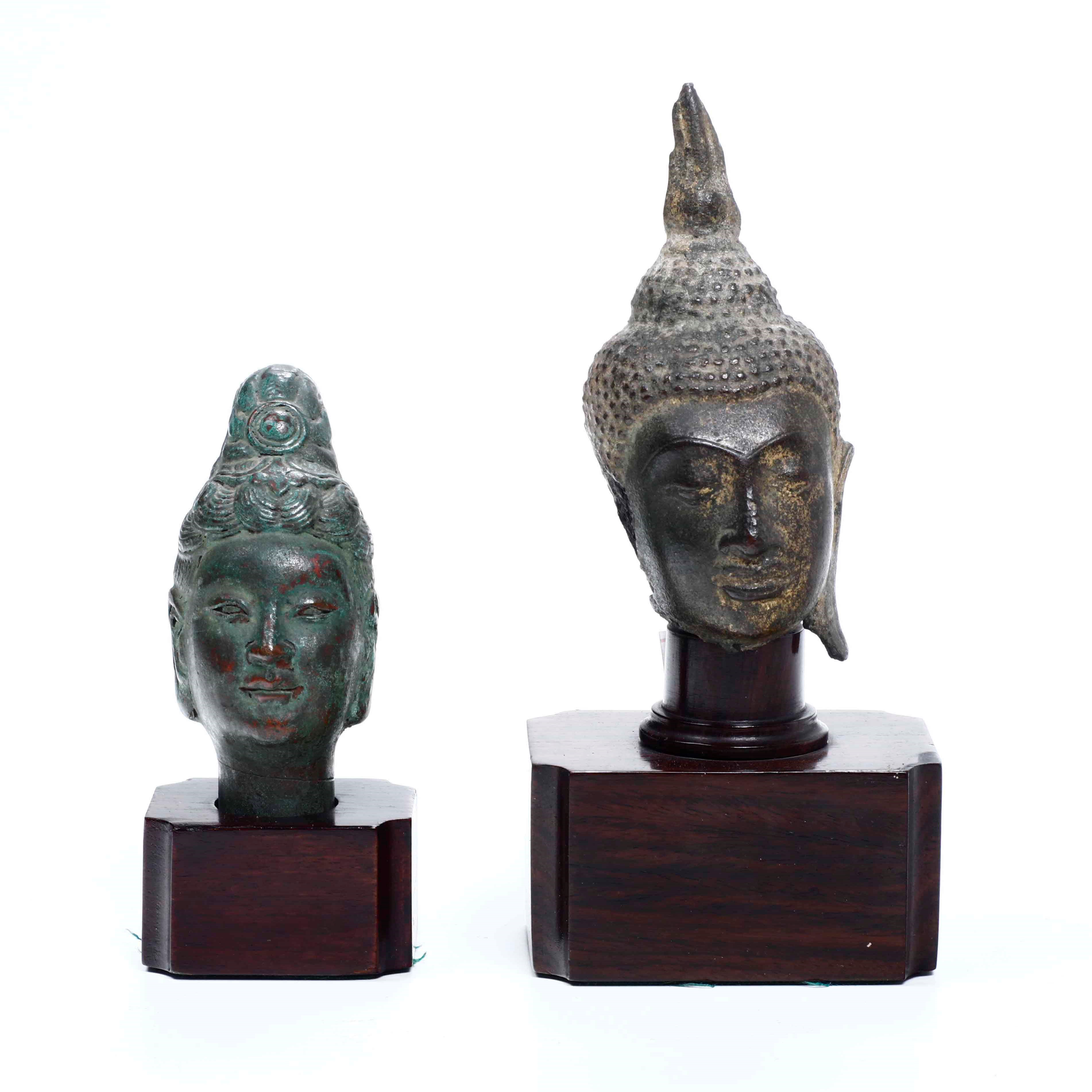 Due teste di Buddha in bronzo, Thailandia, XIX secolo