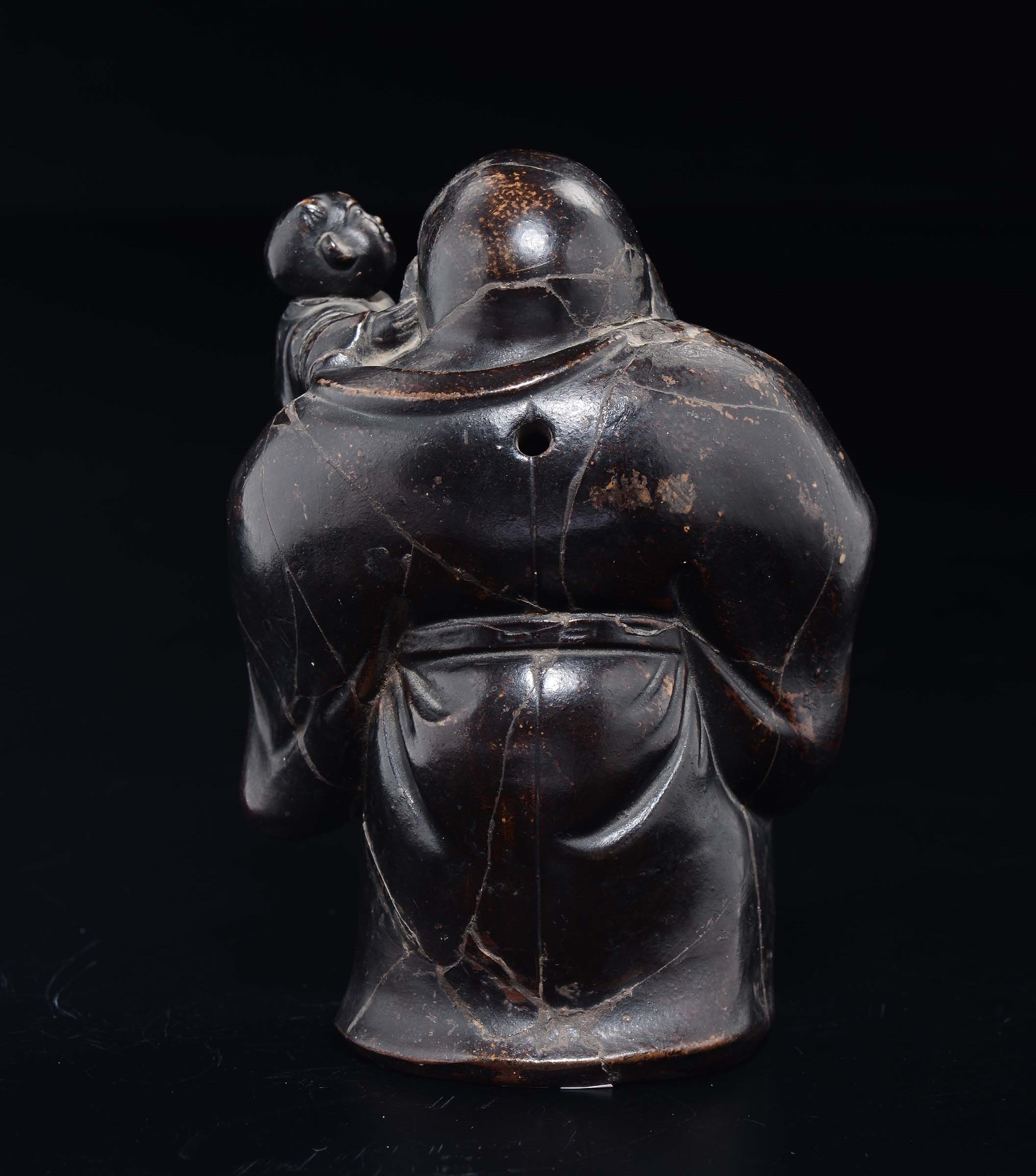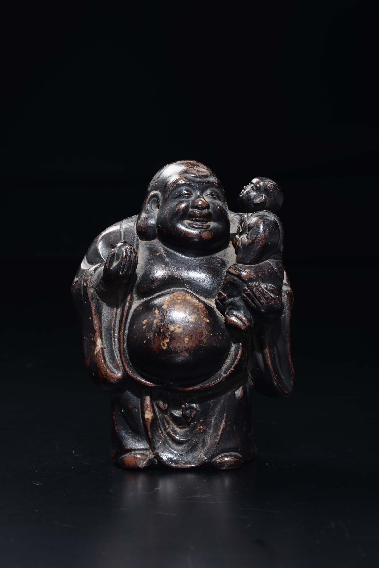Figura di Budai in pasta eretto con pesca e fanciullo, Cina, XX secolo