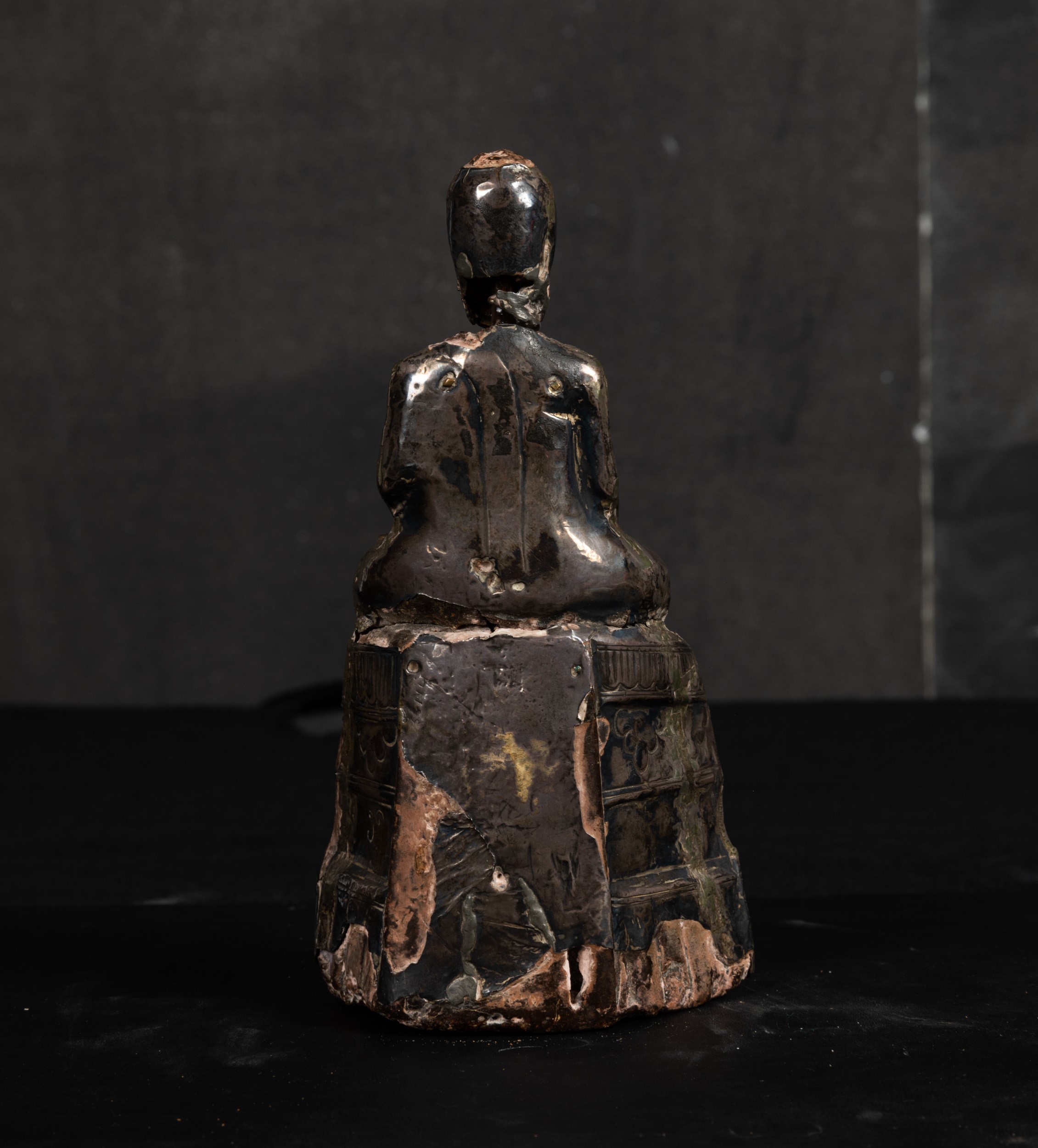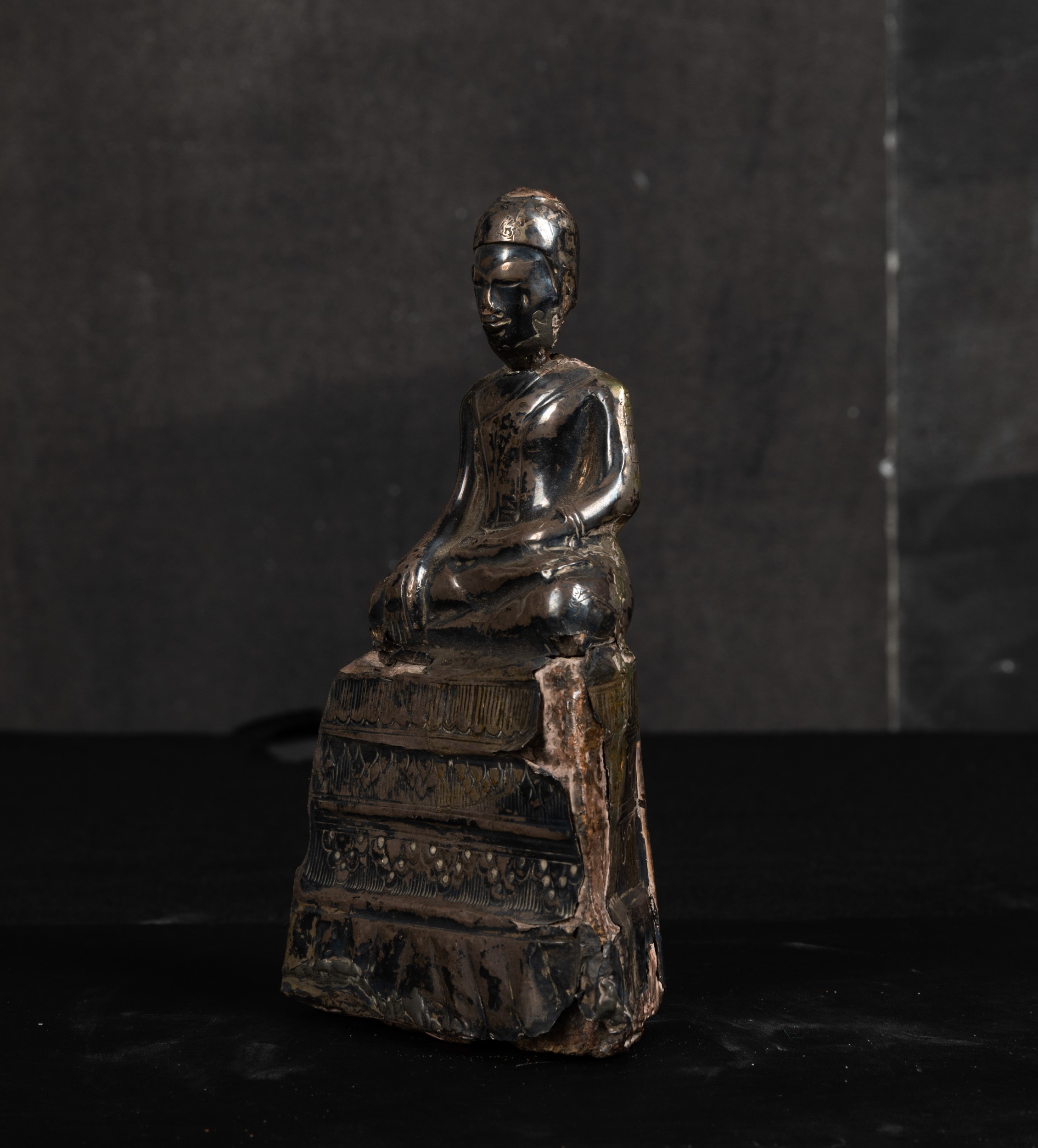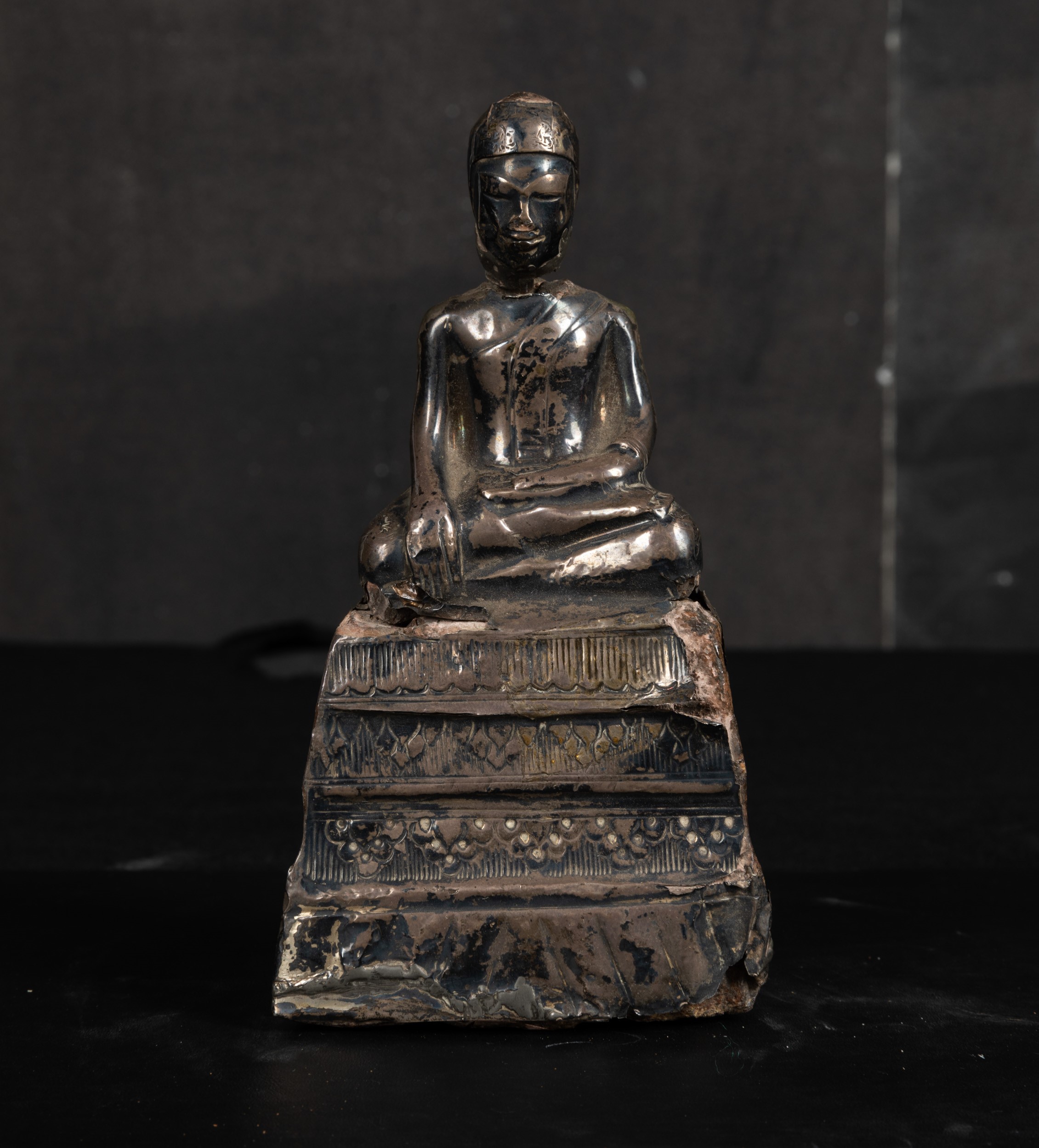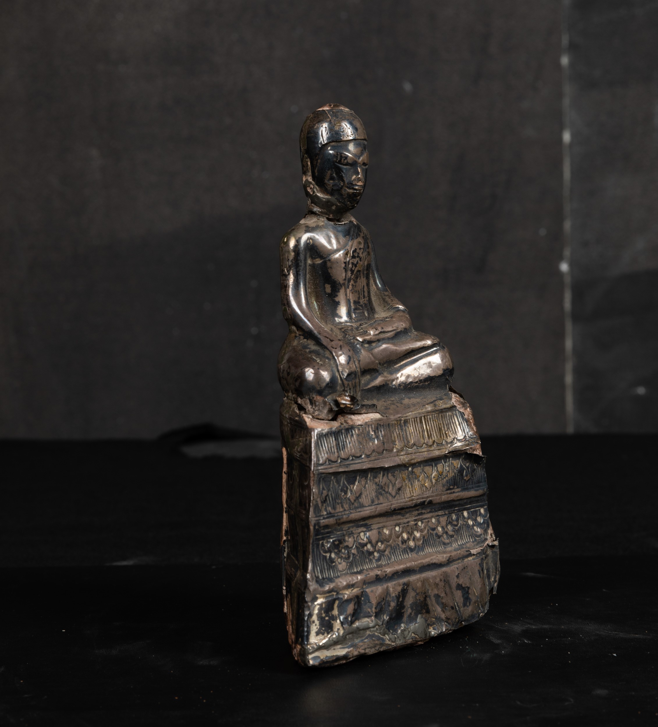 Figura di Buddha Amitayus seduto su piedistallo rivestita in lamina metallica, Thailandia, [..]