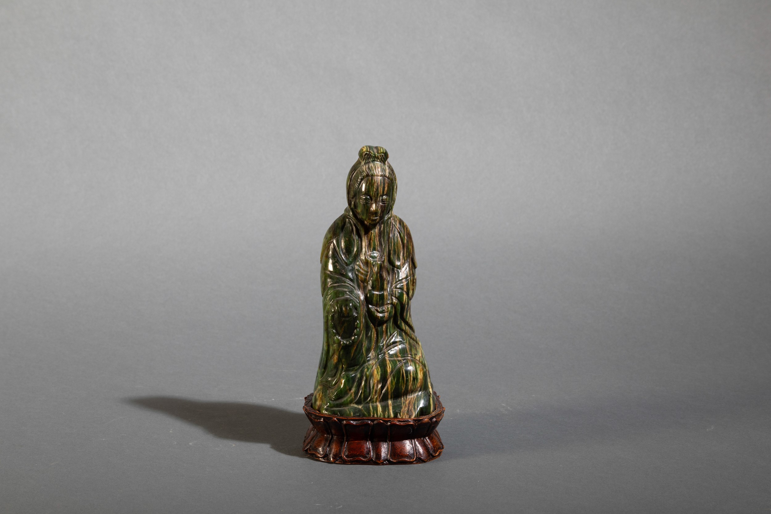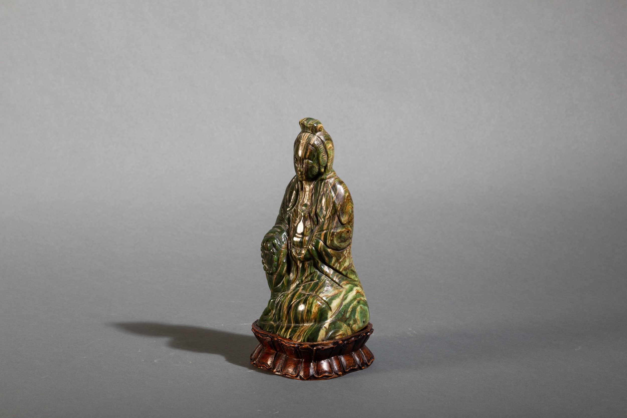 Figura di Guanyin seduta con collana da preghiera scolpita in pietra dura, Cina, [..]