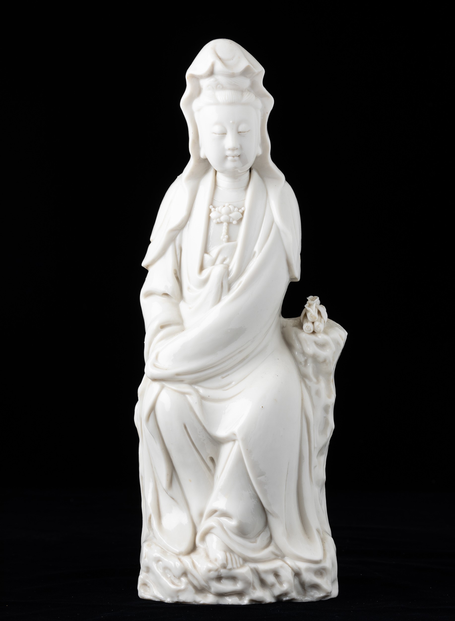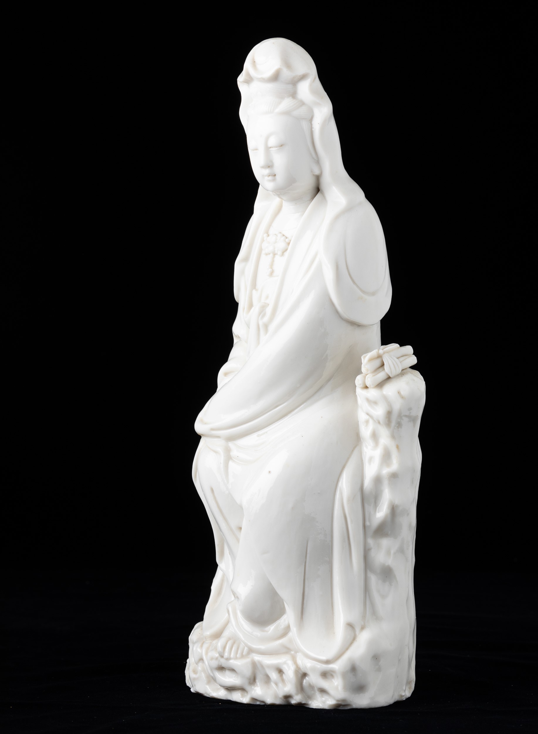 Figura di Guanyin seduta in porcellana Blanc de Chine, Cina, Dinastia Qing, epoca [..]