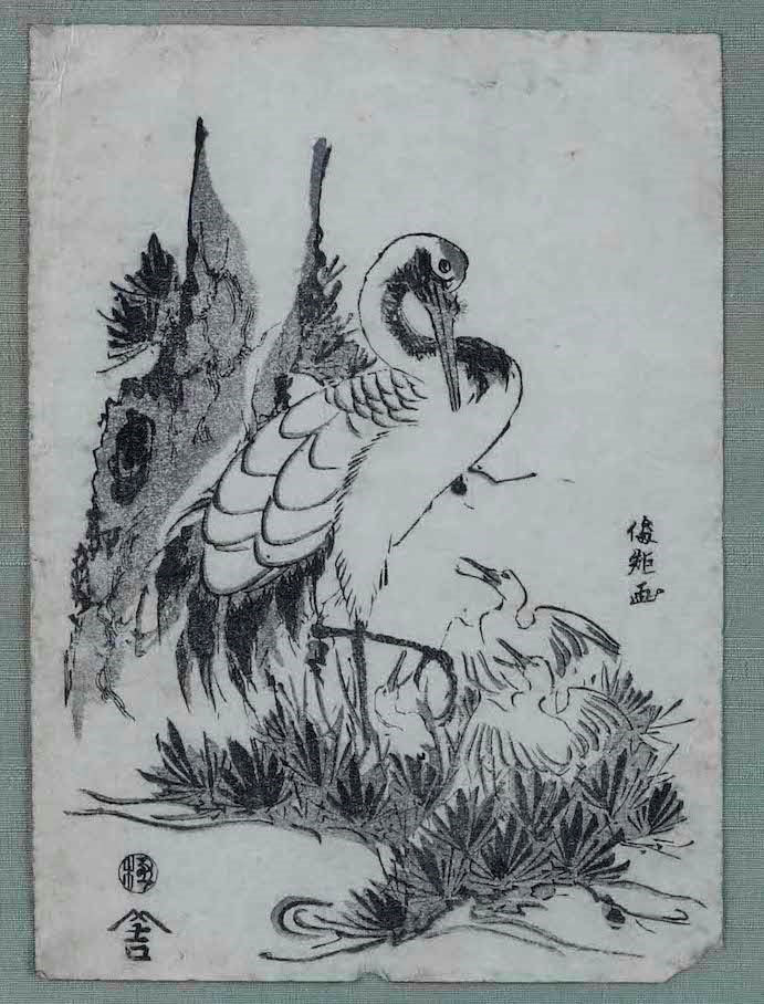 Giappone, XIX secolo Cicogna con i suoi piccoli, 1842