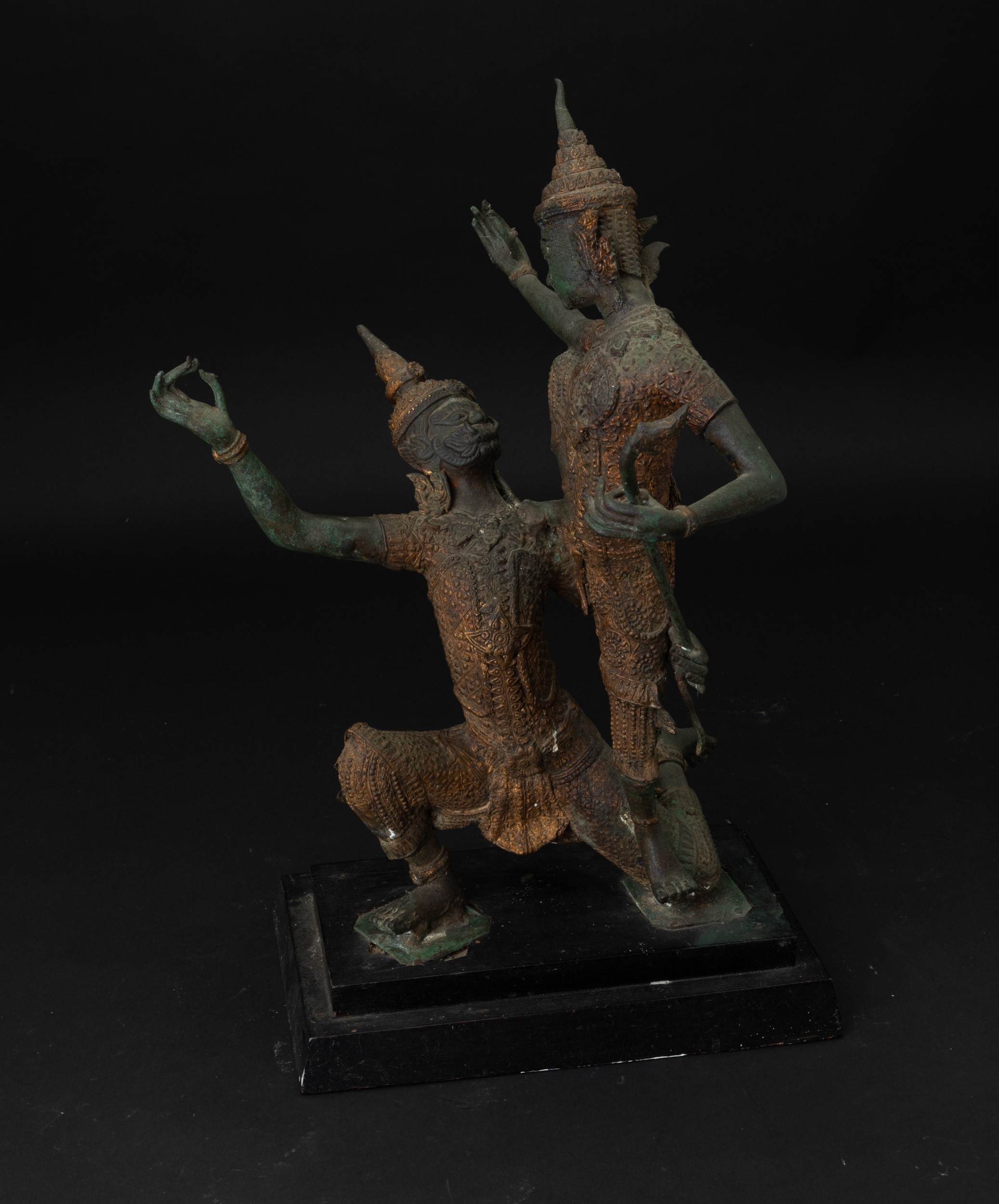 Gruppo in bronzo con tracce di doratura raffigurante due divinitą, Indonesia, XX [..]
