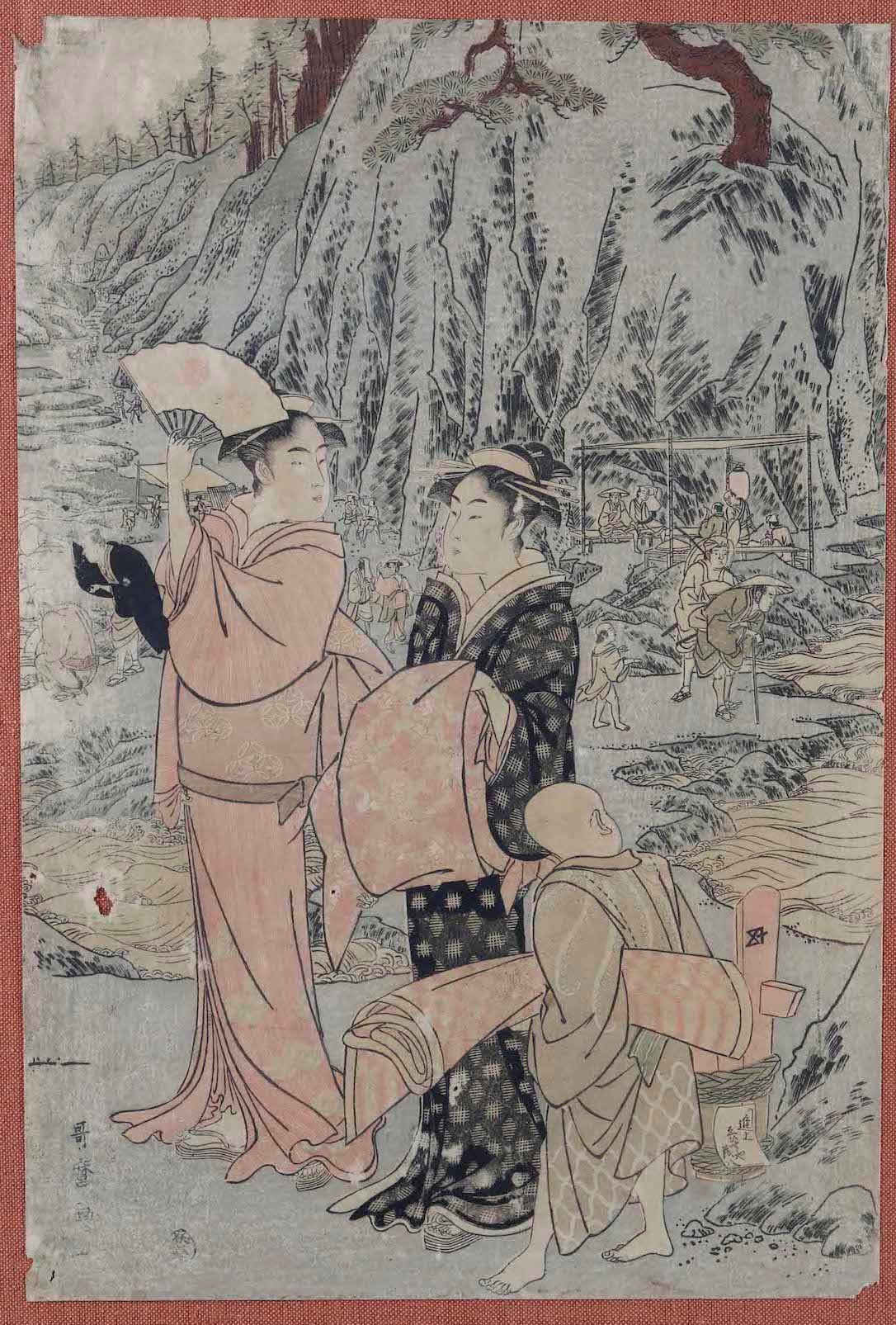 Kitagawa Utamaro (1753-1806) Dama, ancella e bambino a Enoshima