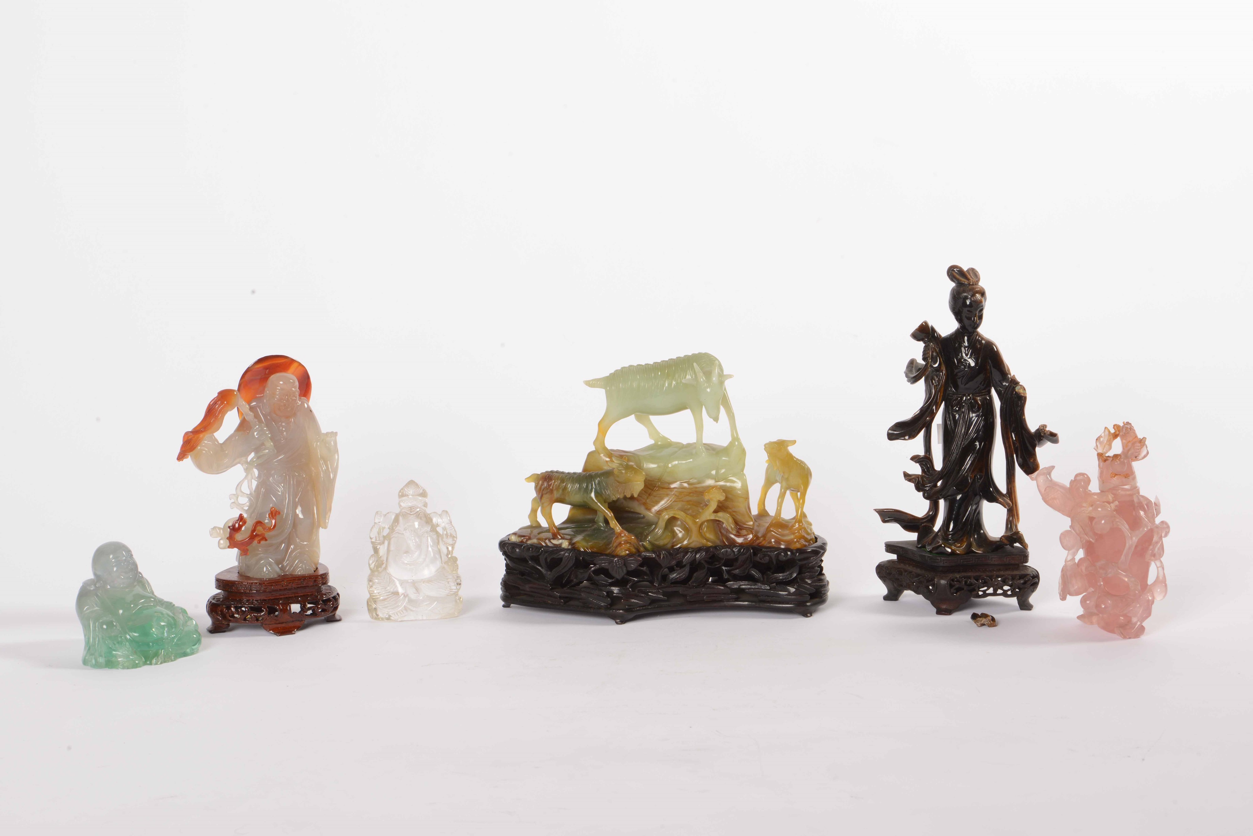 Lotto composto da sei sculture di materiali e soggetti differenti, Cina, XIX-XX [..]