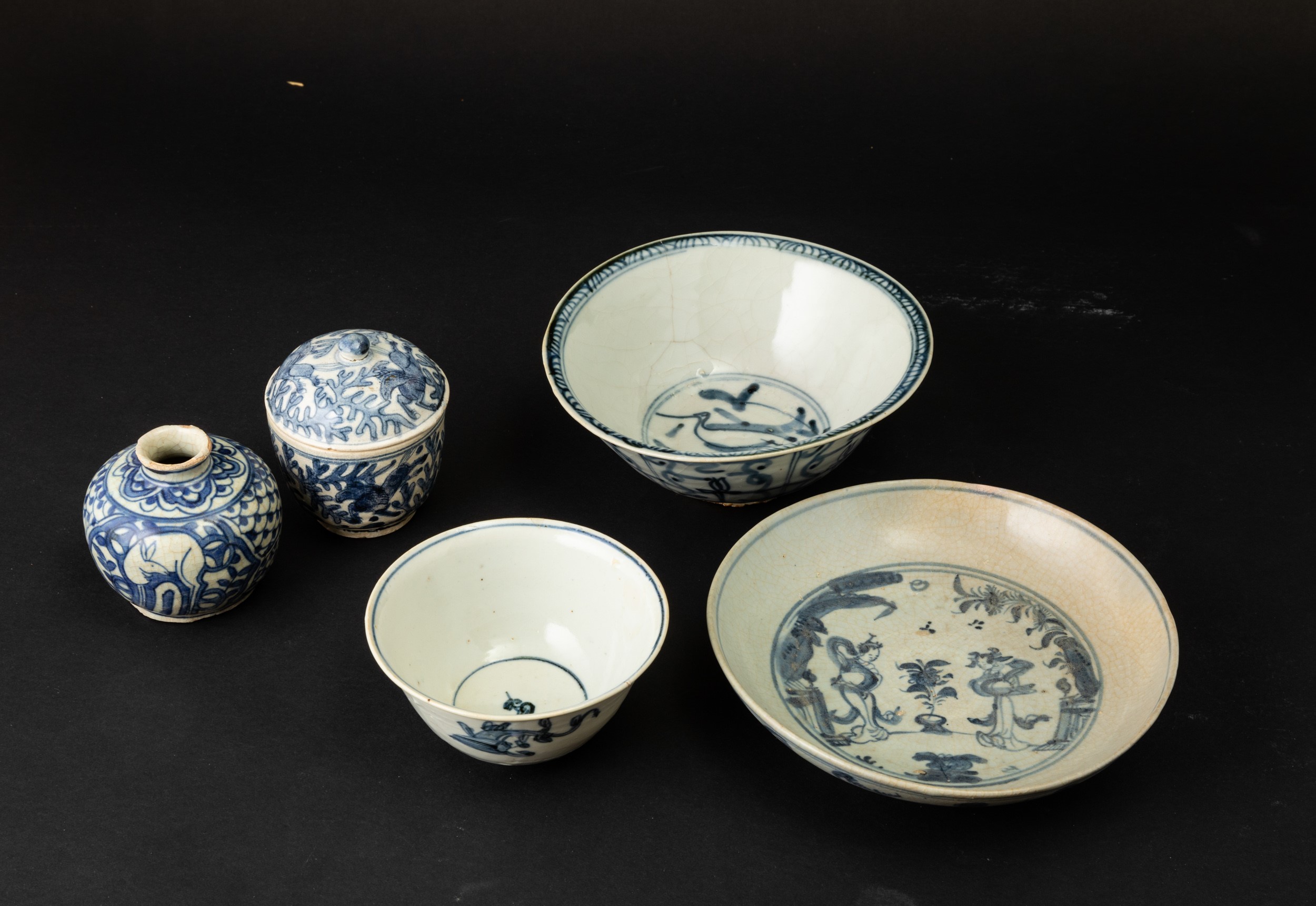 Lotto composto da tre bowl, una ciotola con coperchio e un vasetto in porcellana [..]