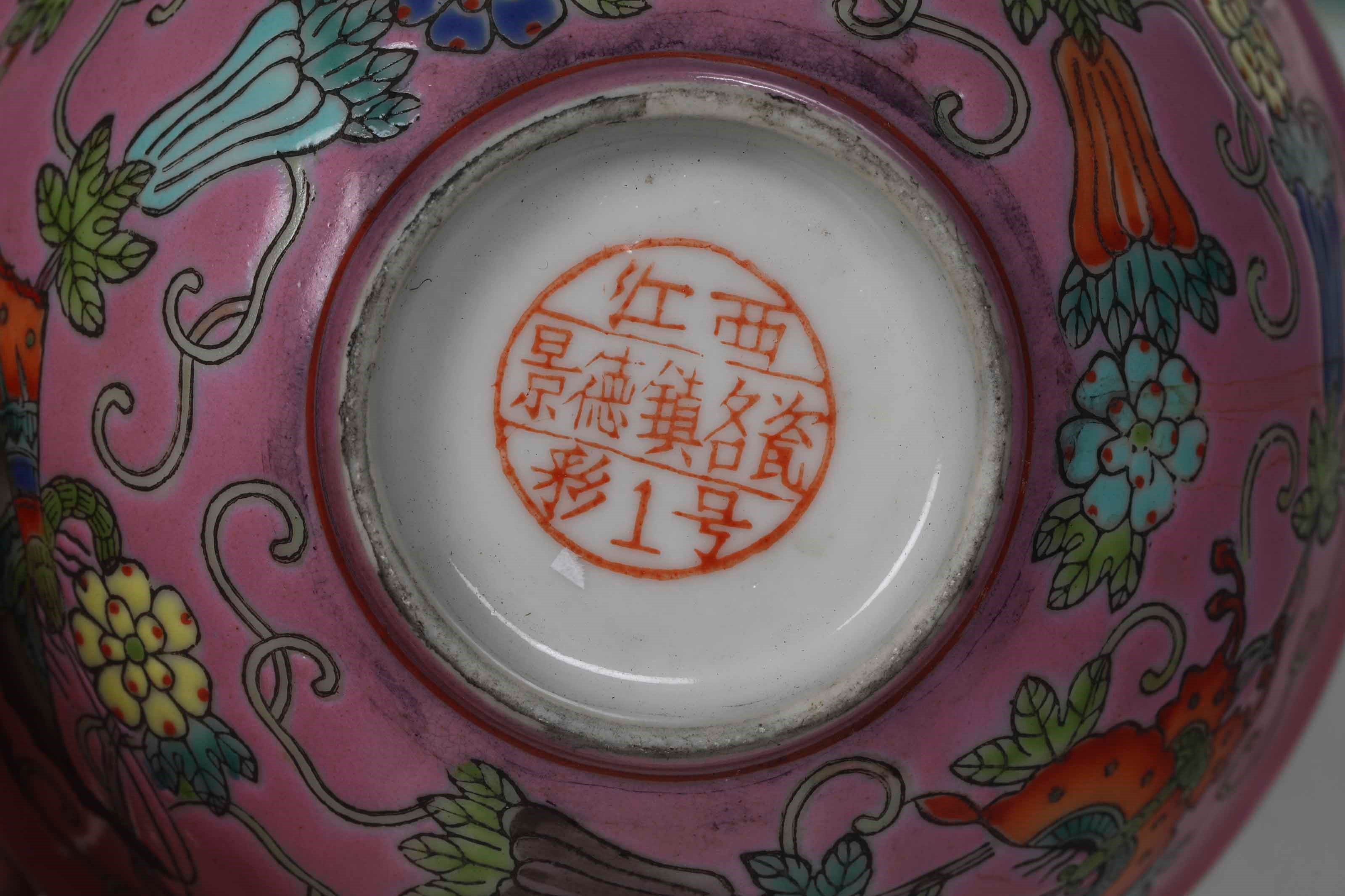 Lotto composto da tre ciotole in porcellana a smalti policromi con decoro a fiori [..]