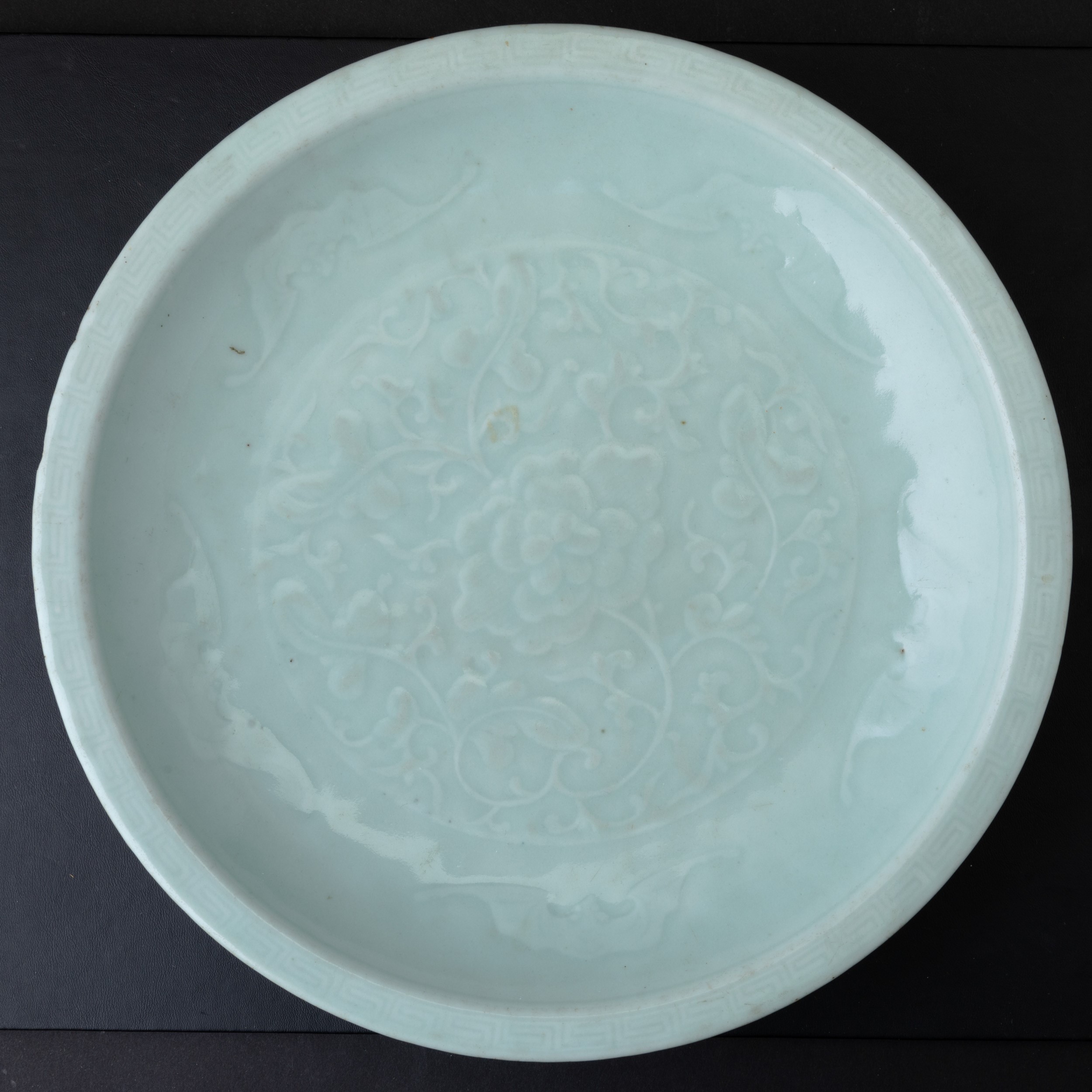 Piatto in porcellana Longquan color Celadon con decori floreali, Cina, Dinastia [..]