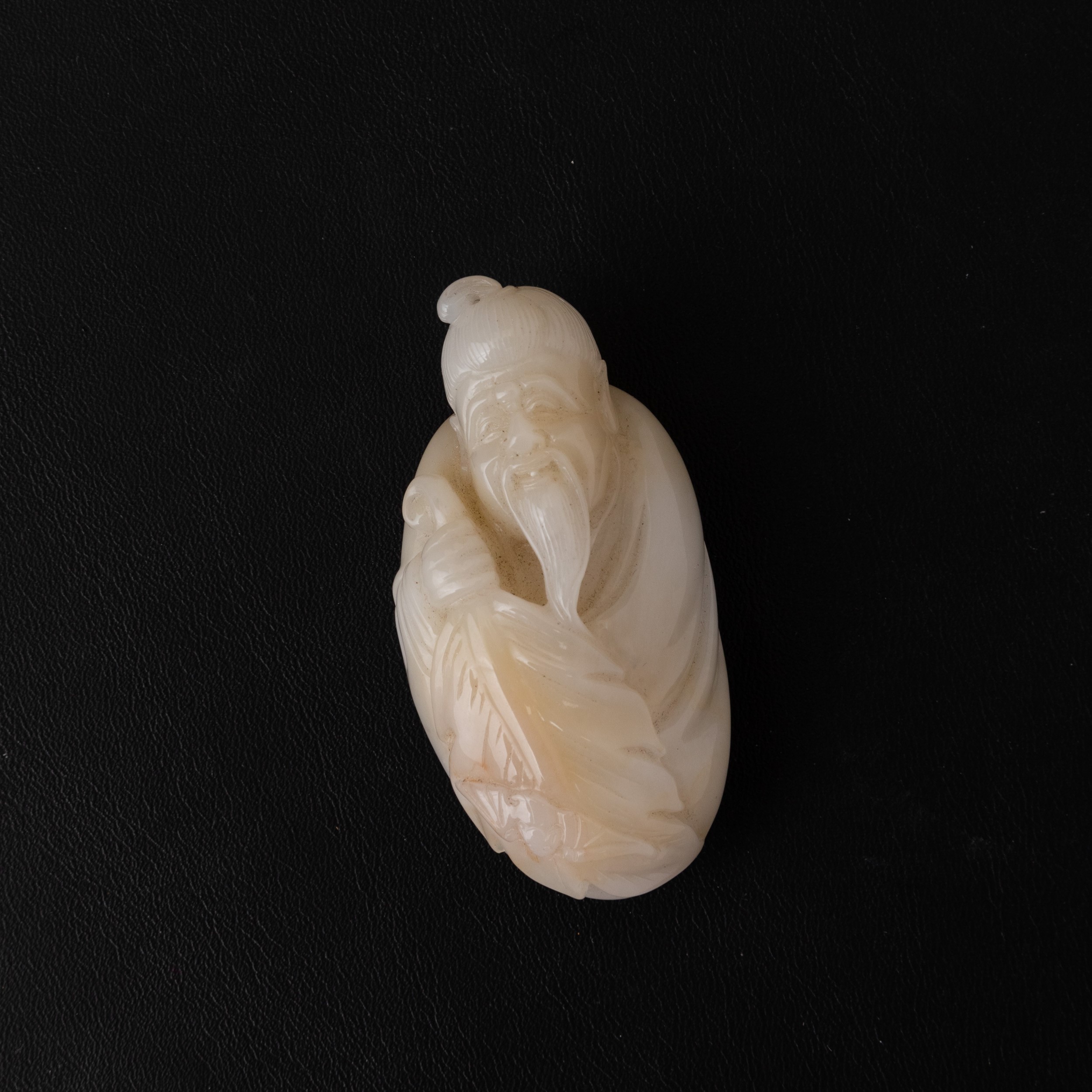 Piccola figura di saggio scolpita in giada bianca, Cina, Dinastia Qing, XIX seco [..]
