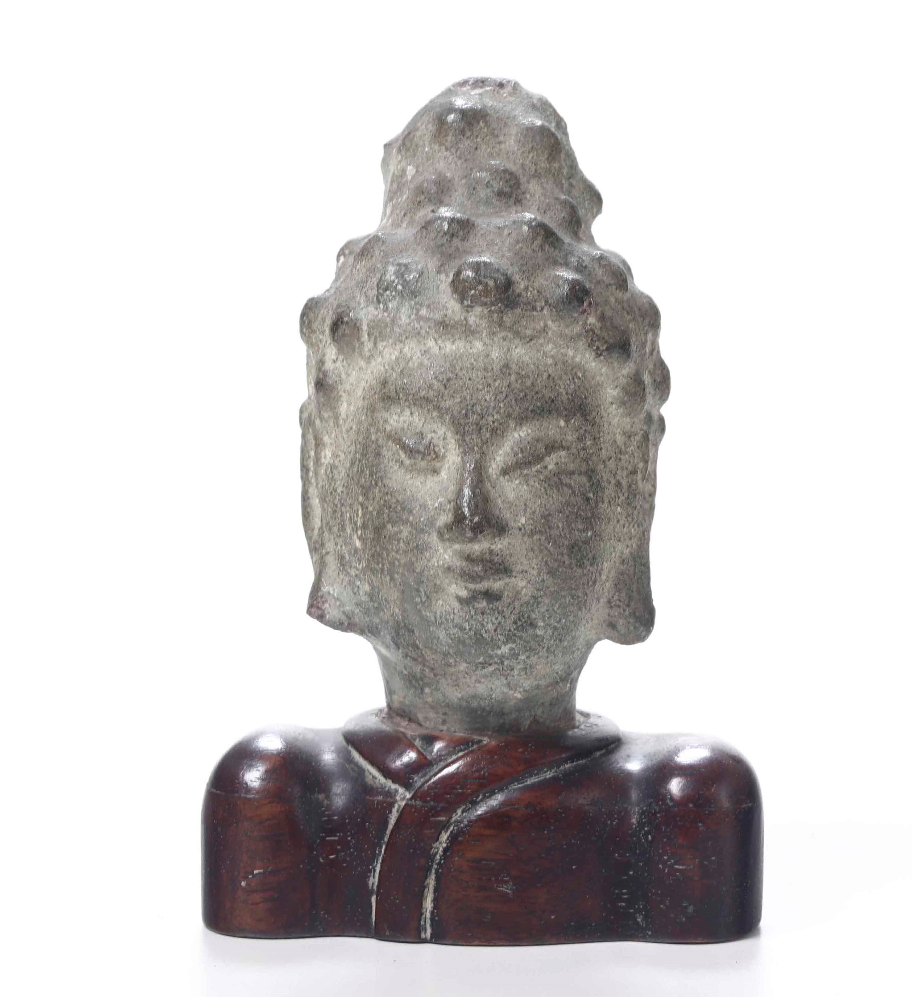 Piccola testa di divinità muliebre in pietra, Khmer, XX secolo