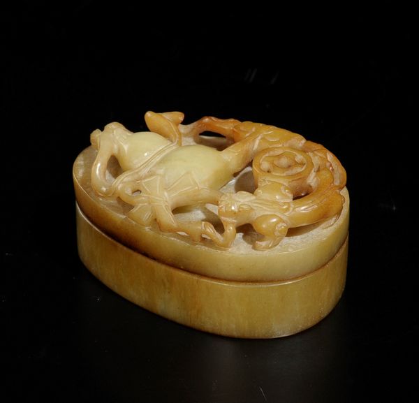 Scatola in giada gialla e russet con zucca a rilievo sul coperchio, Cina, Dinastia [..]
