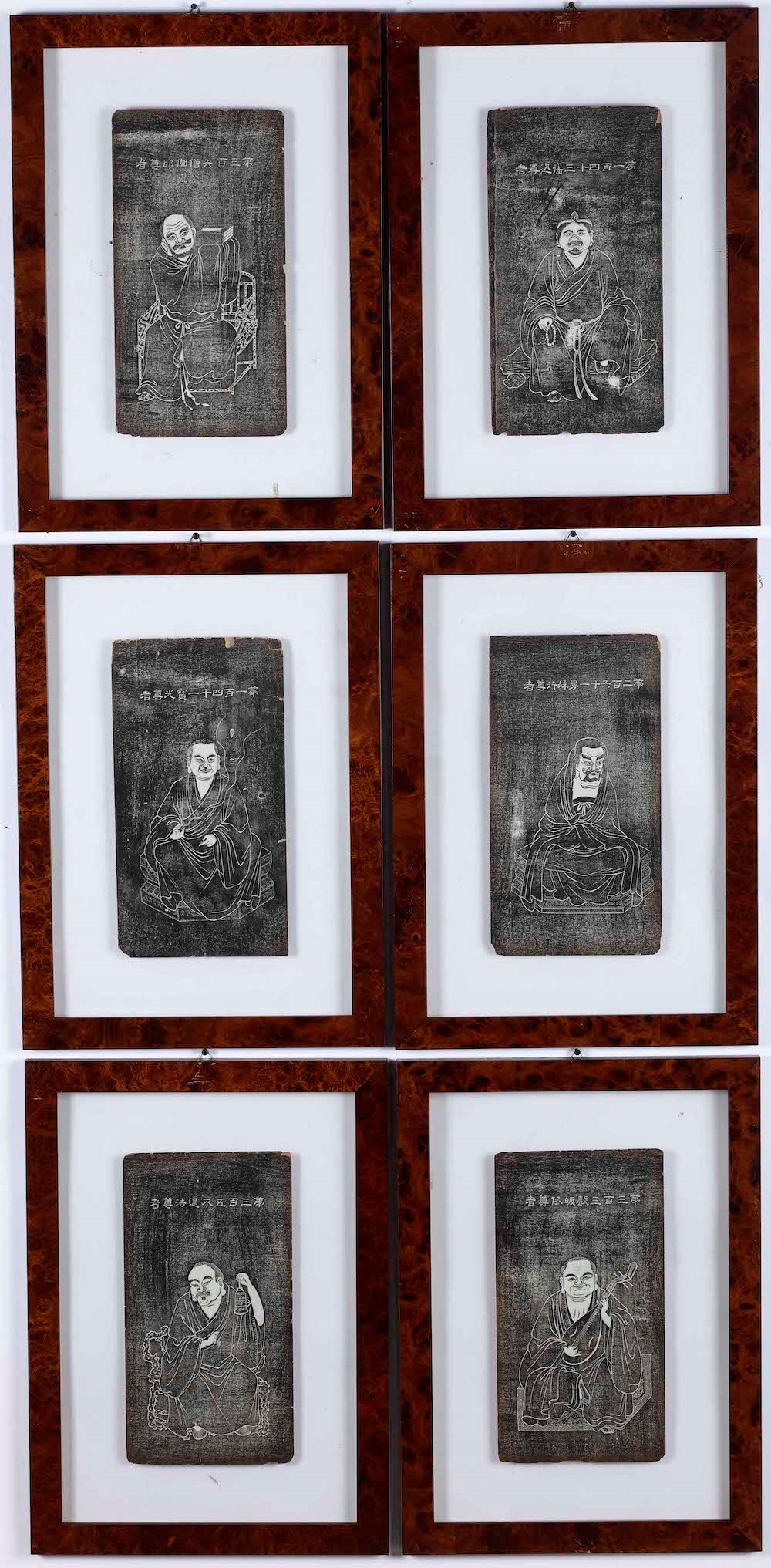 Sei incisioni su carta raffiguranti saggi con iscrizioni, Cina, Dinastia Qing, XIX [..]