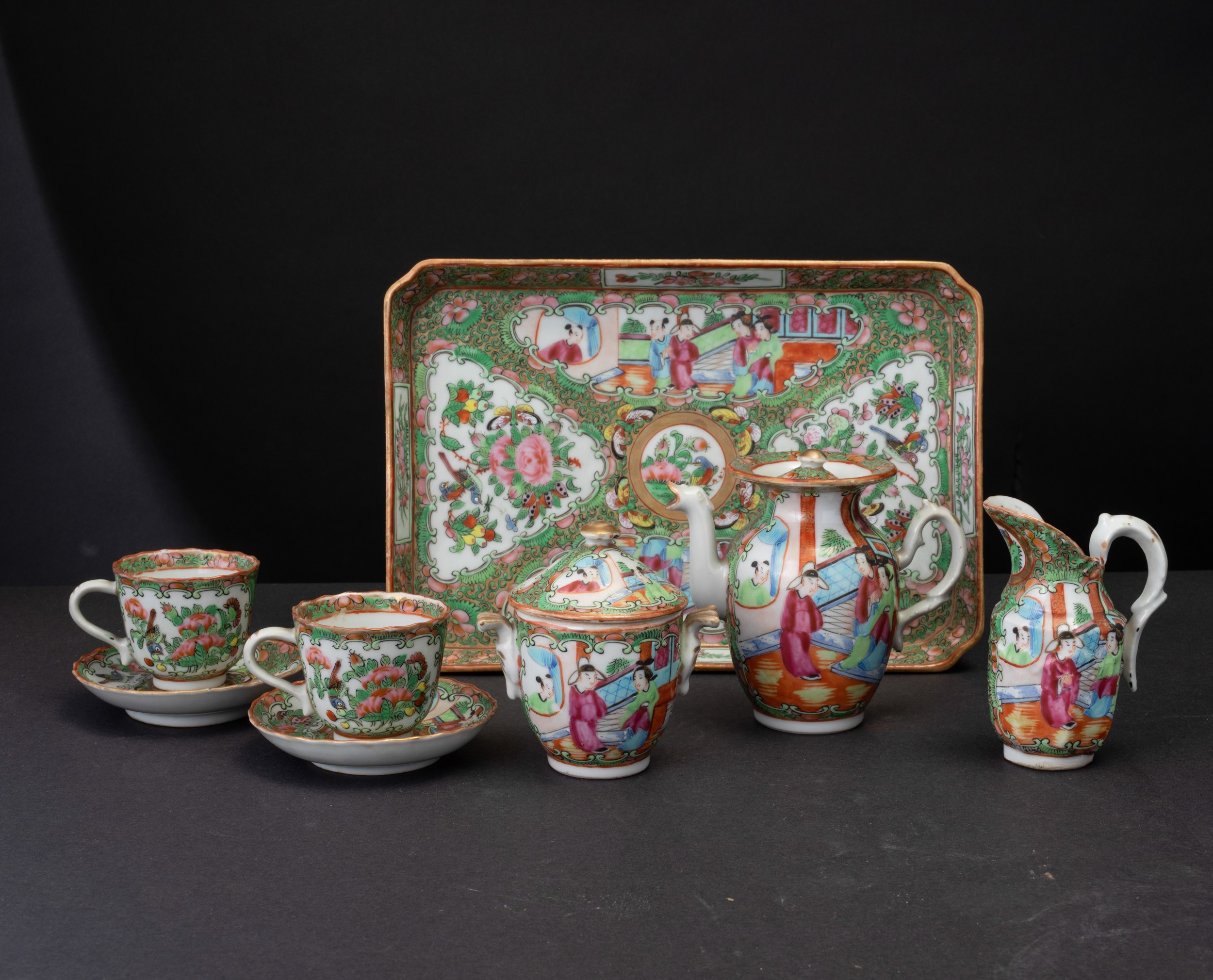 Servizio da thè in porcellana Famiglia Rosa composto da un vassoio, due tazzine [..]