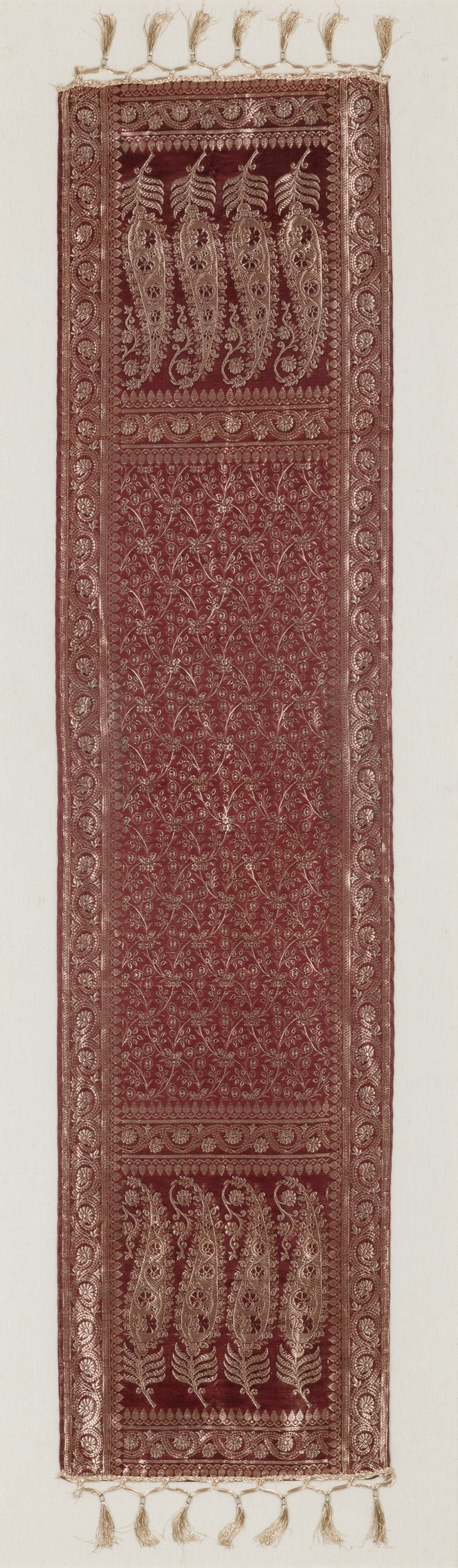 Tessuto in seta e fili dorati con decori vegetali, Persia, XIX secolo