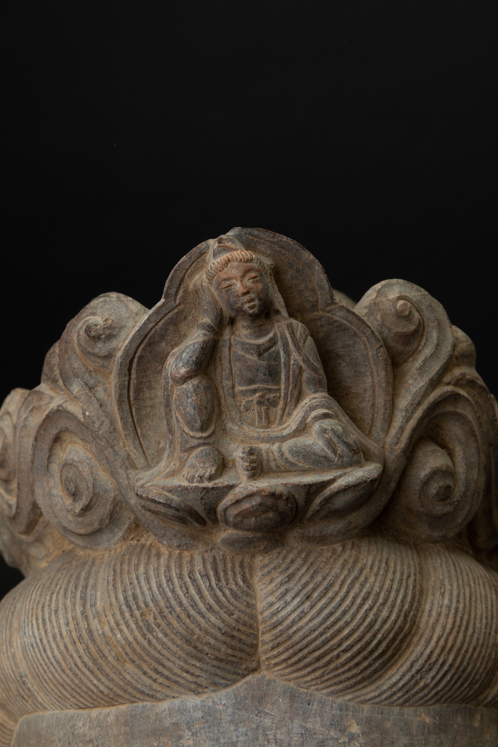 Testa in pietra di Buddha incoronato, Cina, XX secolo