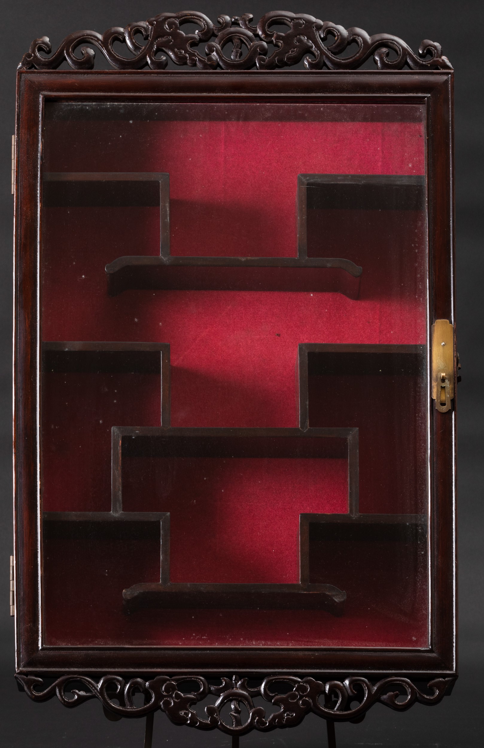 Vetrinetta in legno per snuff bottles, Cina, XX secolo