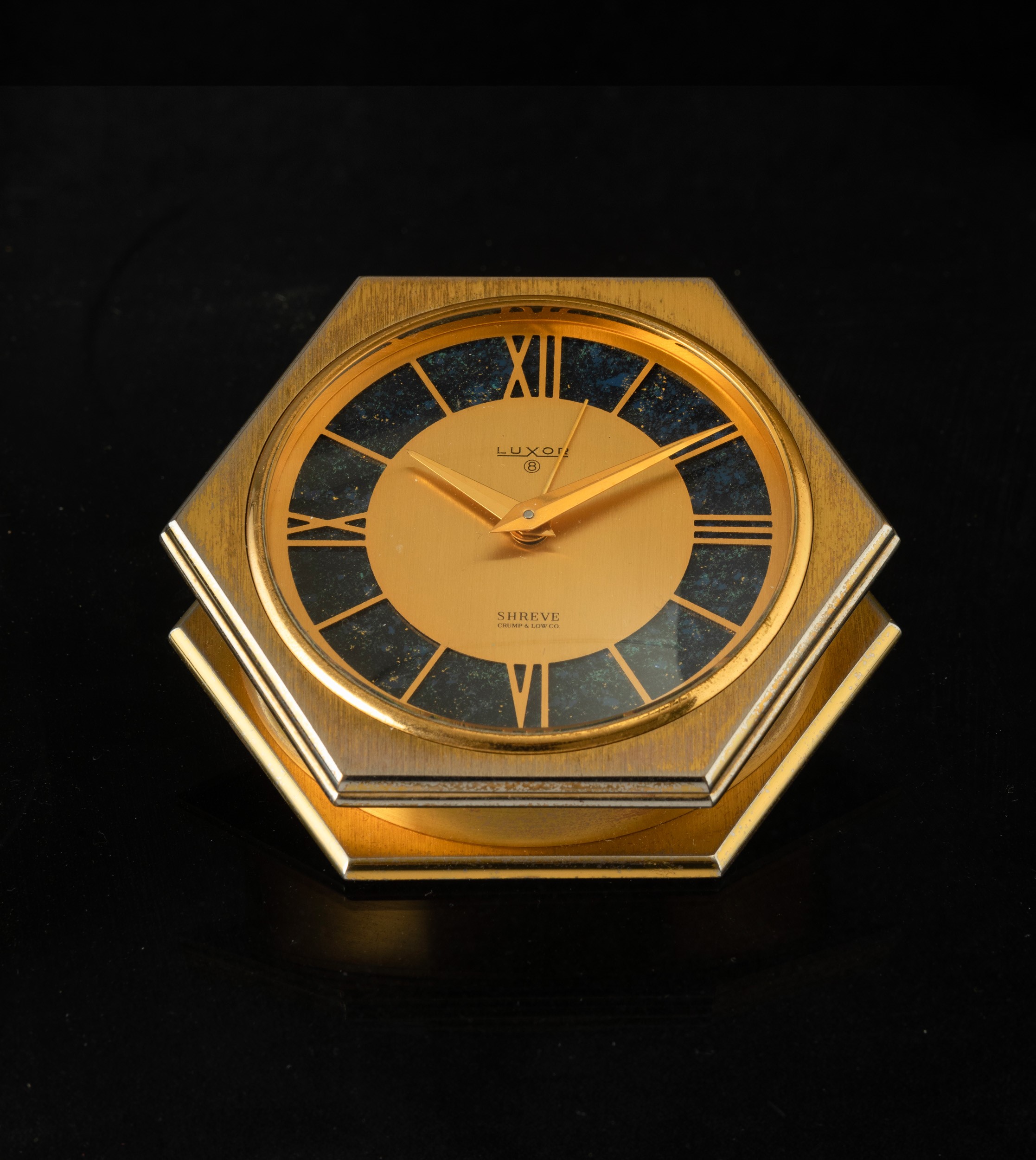 LUXOR - Pendolatta da tavolo esagonale in ottone dorato, carica manuale