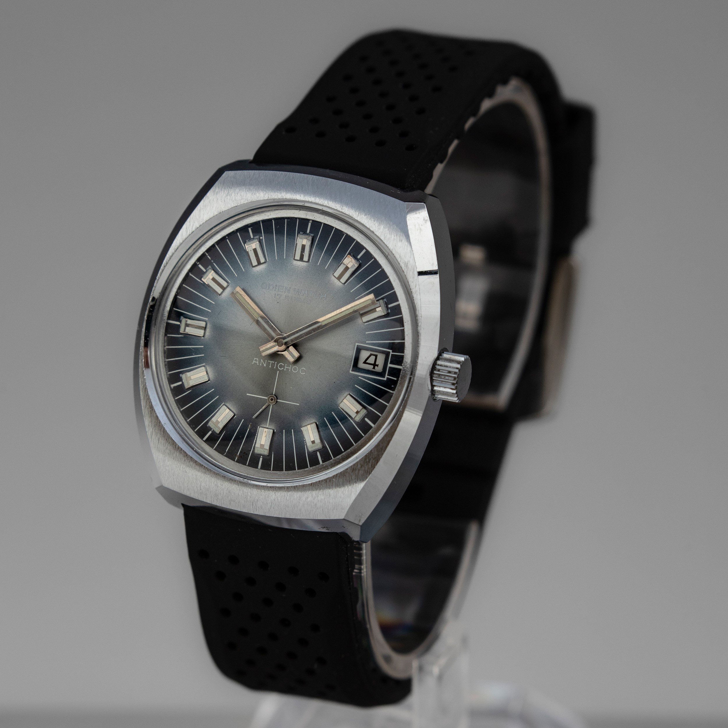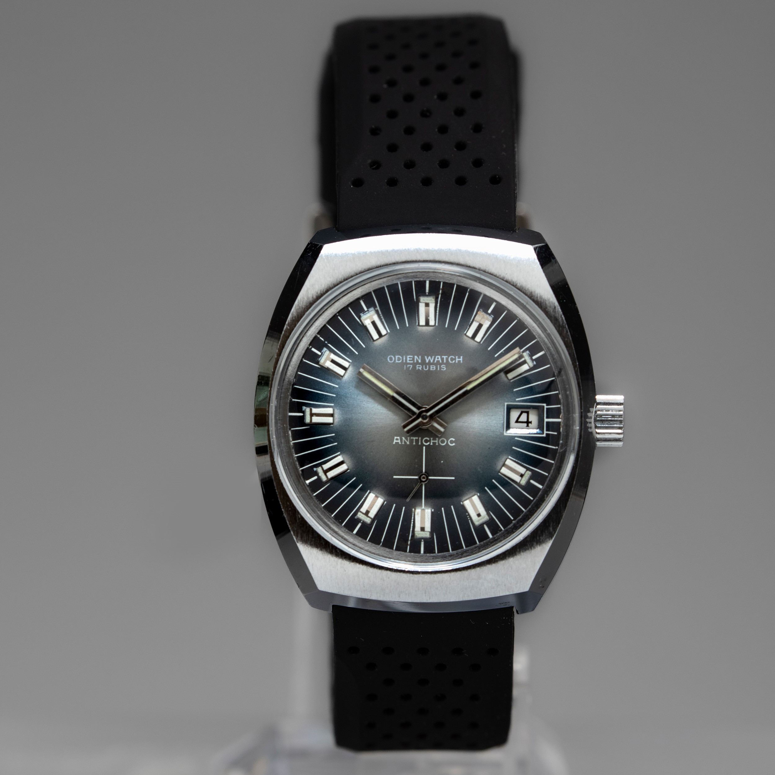ODIEN - Orologio tonneu anni '70 in acciaio con quadrante blu soleil