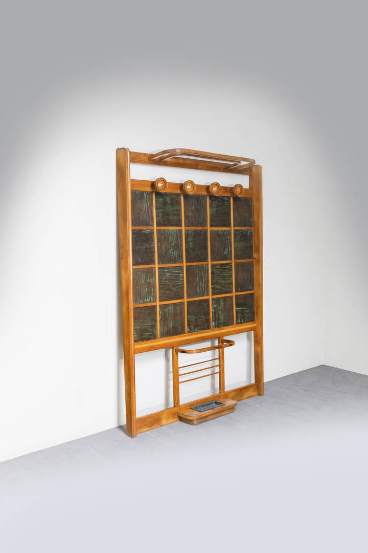 Attaccapanni in legno con riquadri in legno verniciato. Anni '50 cm 173x26x123