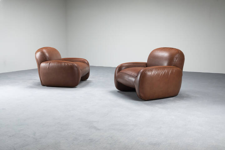 Coppia di poltrone con struttura interamente rivestita in pelle. Anni '70 cm 73x [..]