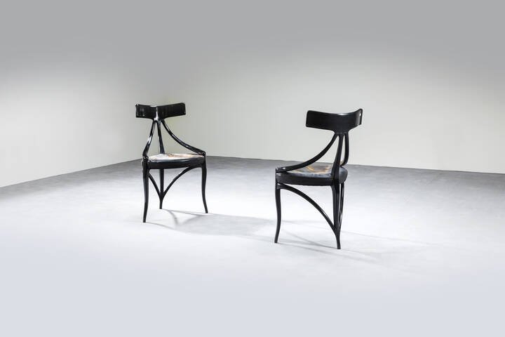 Coppia di sedie in legno ebanizzato seduta in pelle. Un modello simile è stato [..]