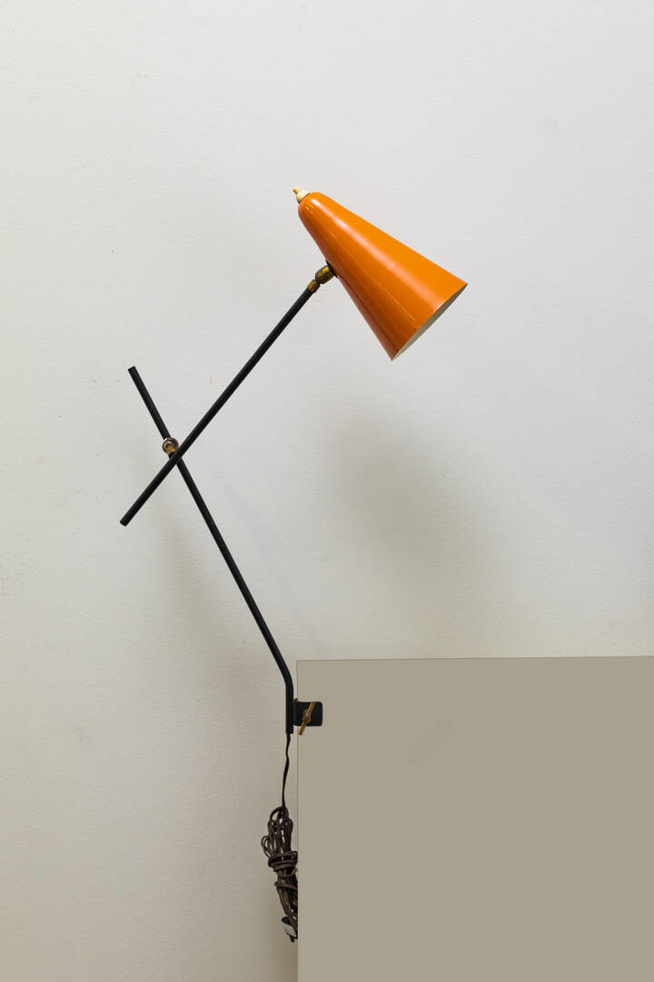 Lampada da tavolo a morsetto in metallo verniciato particolari in ottone. Anni '50 h max cm 61