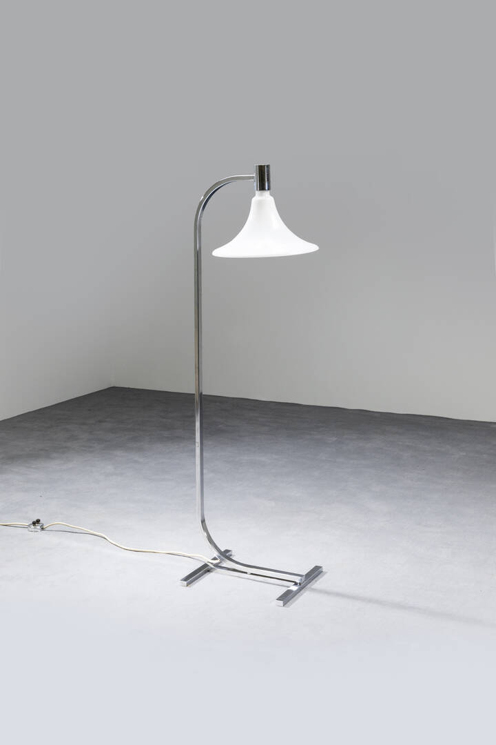 Acciaio cromato e vetro opalino. Prod. Sirrah anni '60 cm 160x50