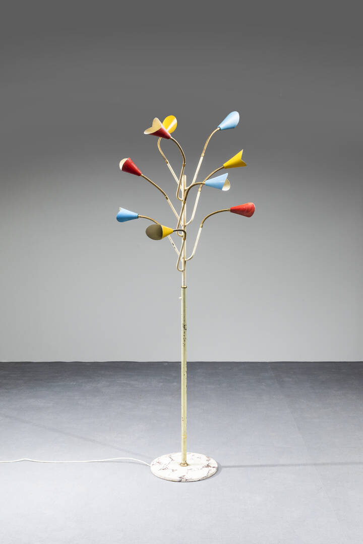 Lampada da terra in metallo verniciato e ottone base in marmo. Anni '50 h cm 21 [..]