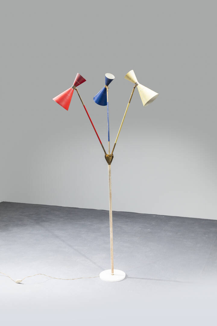 Lampada da terra in metallo verniciato e ottone base in marmo. Anni '50 cm 195x [..]
