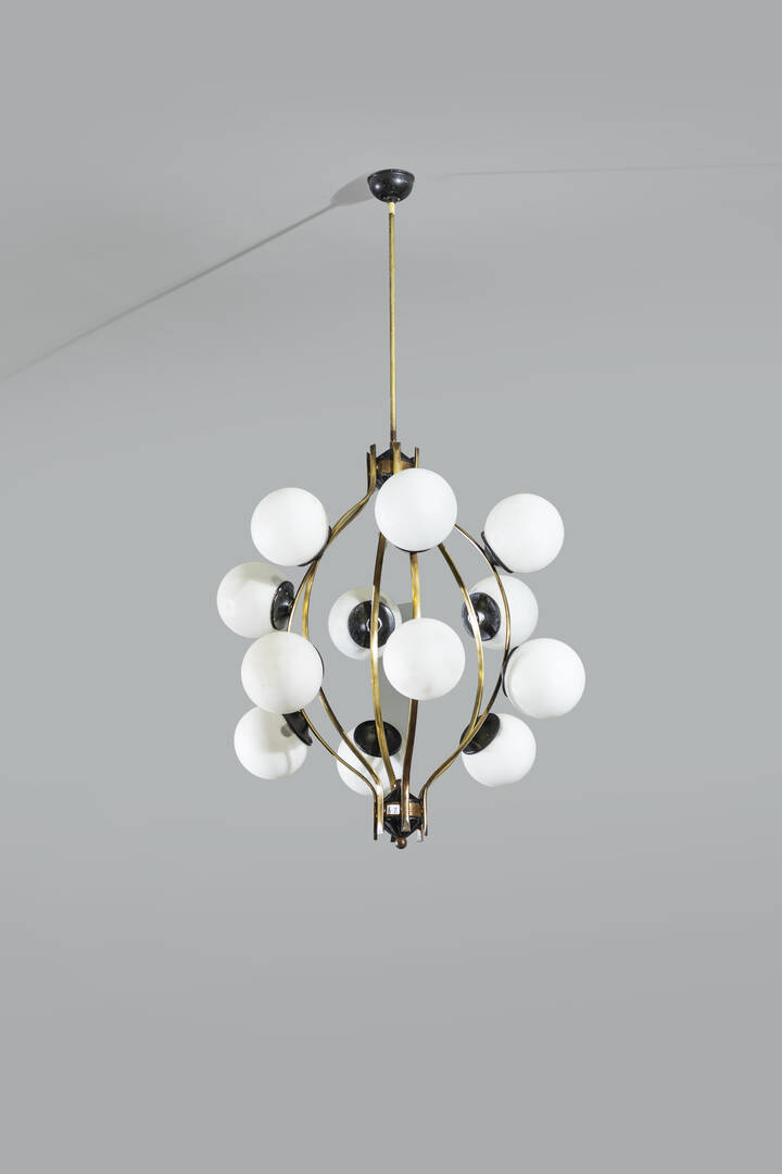 Lampadario in ottone e metallo verniciato. Anni '50 cm 110x65