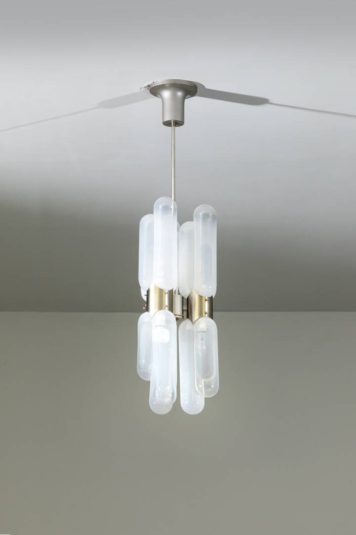 Metallo cromato vetro opalino. Prod. Mazzega fine anni '60 h cm 87