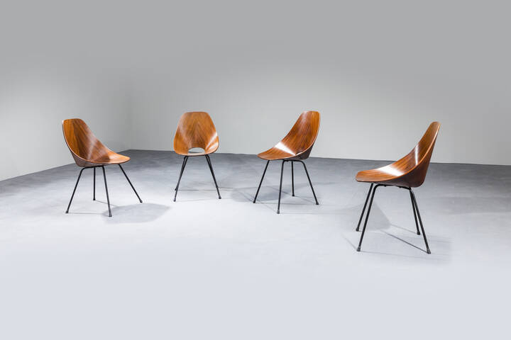 Compensato curvato struttura in metallo laccato. Prod. Tagliabue 1955. cm 85x55x46 Bibl.: Giuliana Gramigna Repertorio 1950-1980 Mondadori 1985 pag. 90