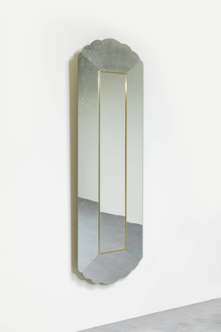 Specchiera in vetro specchiato particolari in ottone. Anni '70 cm 154x53 5