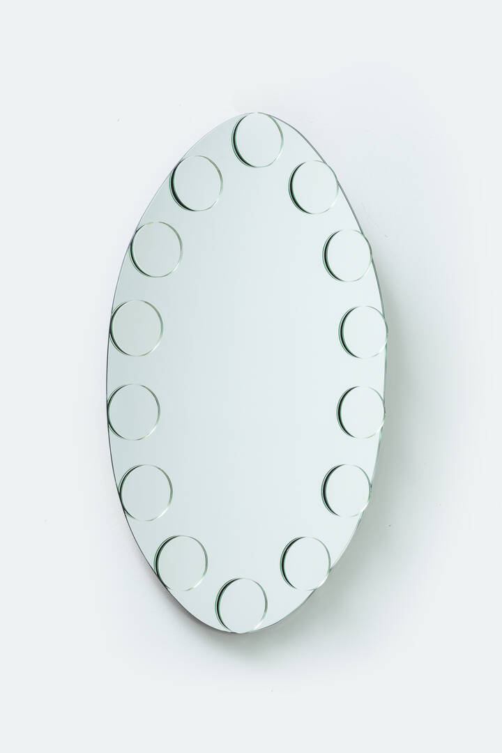 Specchio ovale con applicazioni vetri specchiati. Anni '80 cm 100x60