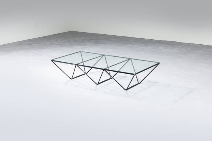 Tavolino con struttura in tubolare di metallo verniciato piano in vetro. Anni '70 [..]