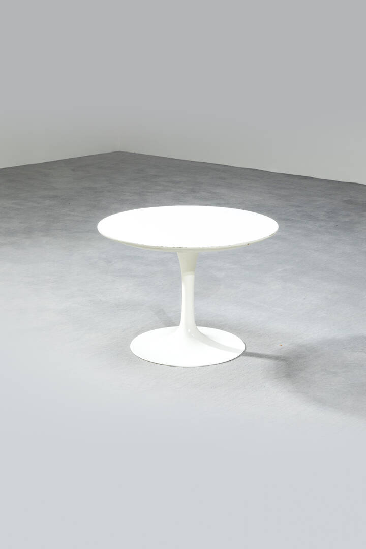 Tavolo basso con stuttura in fusione di alluminio laccato e piano in legno laccato. Produzione Knoll International USA 1970 ca. Etichetta del produttore sotto la base cm 37x51