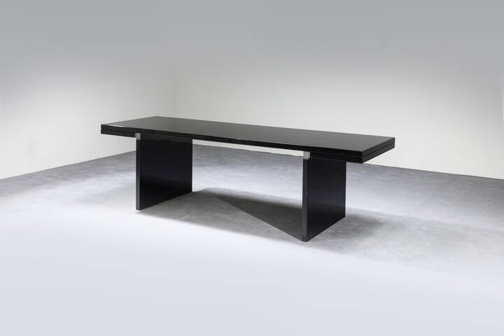 Legno laccato laminato con giunzioni in fusione di alluminio satinato. Prod. Simon anni '70 cm 71 5x241x77