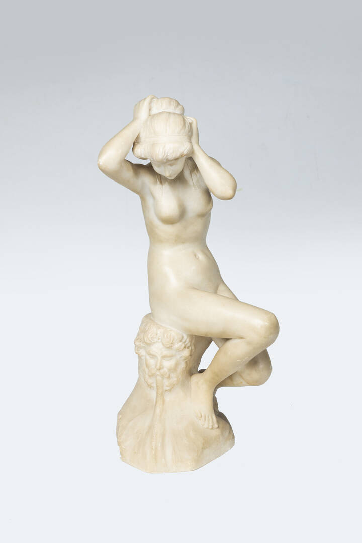H. cm 47 scultura in alabastro Opera firmata in basso al retro in corrispondenza della base Presente fessurazione della base