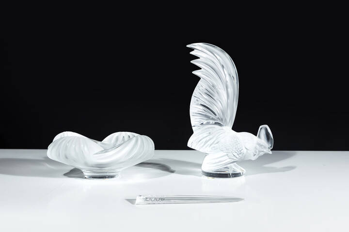 Diam. 16 cm H 21 Lotto di tre oggetti firmati Lalique- France; una ciotola un gallo [..]