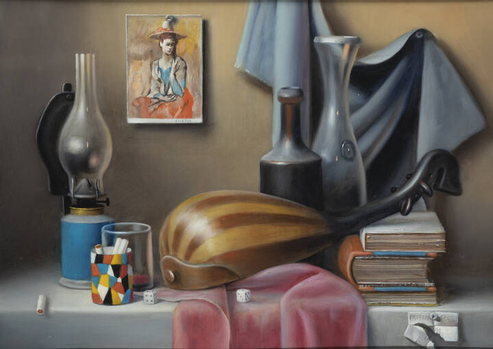 50x70 olio su masonite Opera firmata e datata in basso destra iscritta al retro in stampatello Proferio Grossi Milano 1991