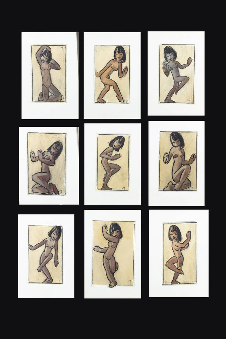 Tutte tecniche miste su carta applicata su cartoncino con data e misure al retro dello stesso 1 - 20 5x12 5 siglata in basso a destra 2 - 23x15 siglata in basso a destra 3 - 22 5x12 5 siglata in basso a siniistra 4 - 21x13 siglata in alto a destra 5 - 21x13 siglata in basso a destra 6 - 21 5x13 siglata in basso a destra 7 - 23x14 siglata in basso a destra 8 - 21x12 5 siglata in basso a destra 9 - 22x14 siglata in basso a destra