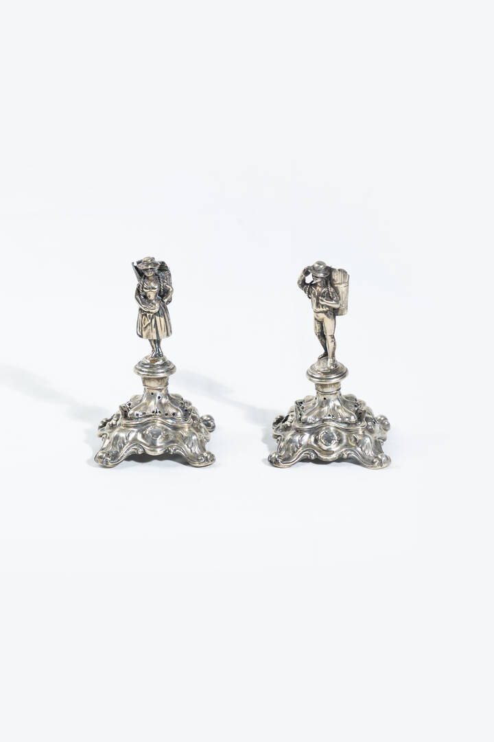 Peso gr 109 5 H cm 12 a forma di contadino e contadina con ceste sulle spalle. Poggianti [..]
