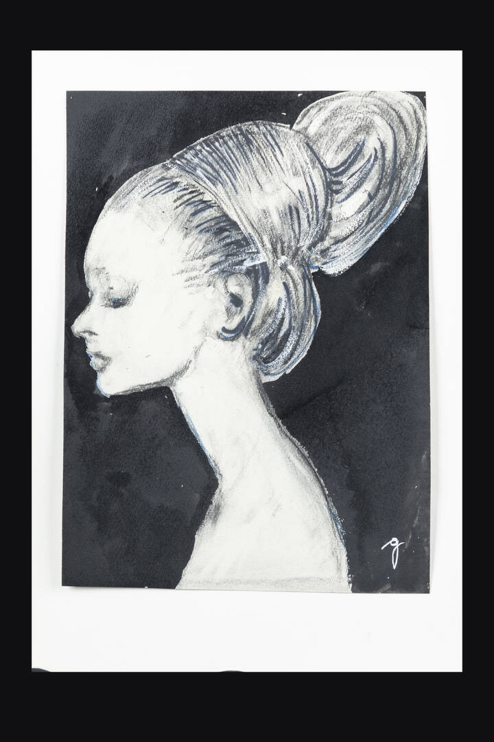 37x28 carboncino e guazzo su cartoncino parzialmente applicato su un secondo cartoncino Opera siglata in basso a destra; data tecnica e misure al retro