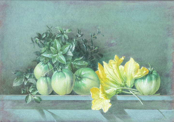 29x40 acrilico su carta Opera firmata in basso a destra Già Galleria Fogliato Torino (etichetta al retro)
