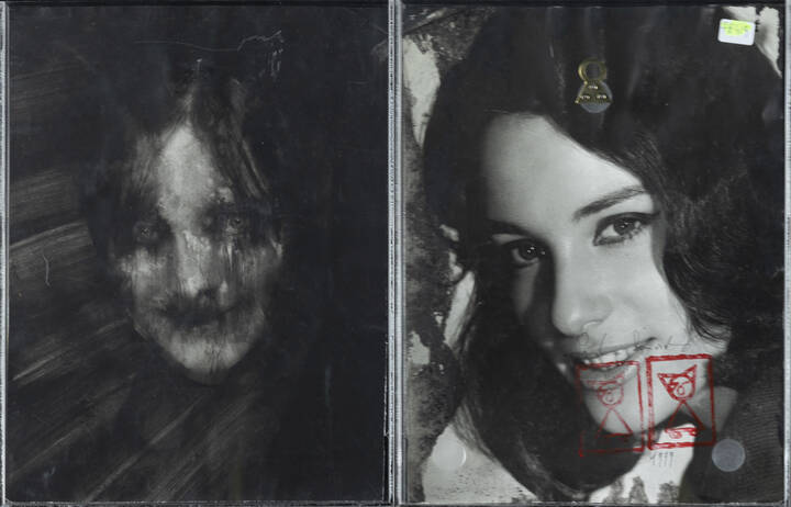 34x27 5 tecnica mista su cartoncino applicato su foglio di rivista Opera firmata e datata al retro L'opera è infilata in contenitore di plexiglass è visibile da entrambi i lati ed estraibile