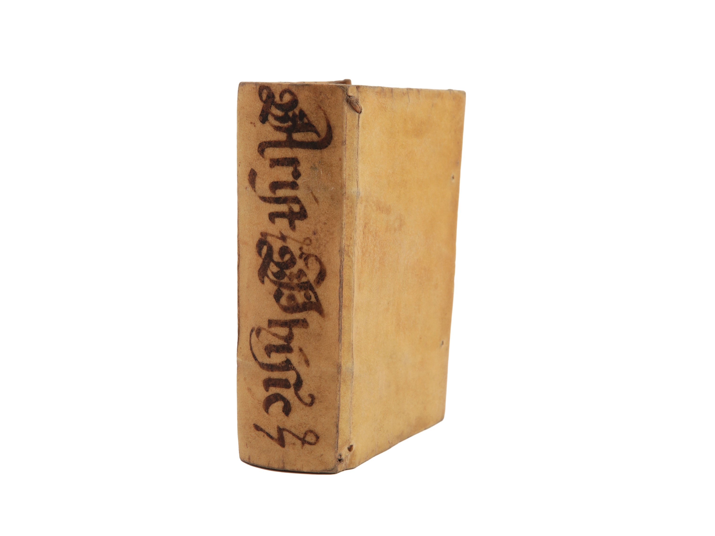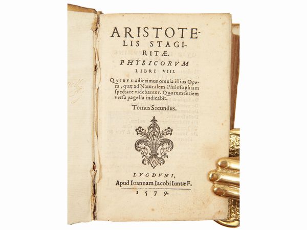 Lugduni: apud Ioannam Iacobi Iuntae F., 1579. In-16° (130x85 mm). 795 p. Iniziali xilografiche. ...Quibus adiecimus omnia illius Opera, quae ad naturalem philosophiam spectare videbantur. Quorum seriem versa pagella indicabit. Tomus secundus. Legatura coeva in piena pergamena con bel titolo calligrafico al dorso, allentata, con parziale distacco dal piatto posteriore. Ampie zone brunite, fioriture. Ultima c. con annotazioni manoscritte d'antica mano